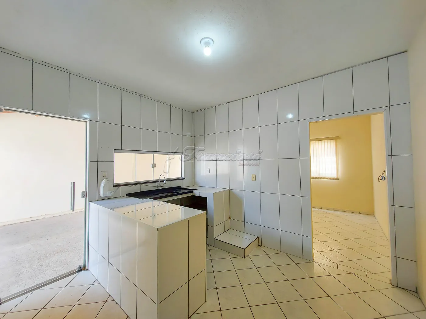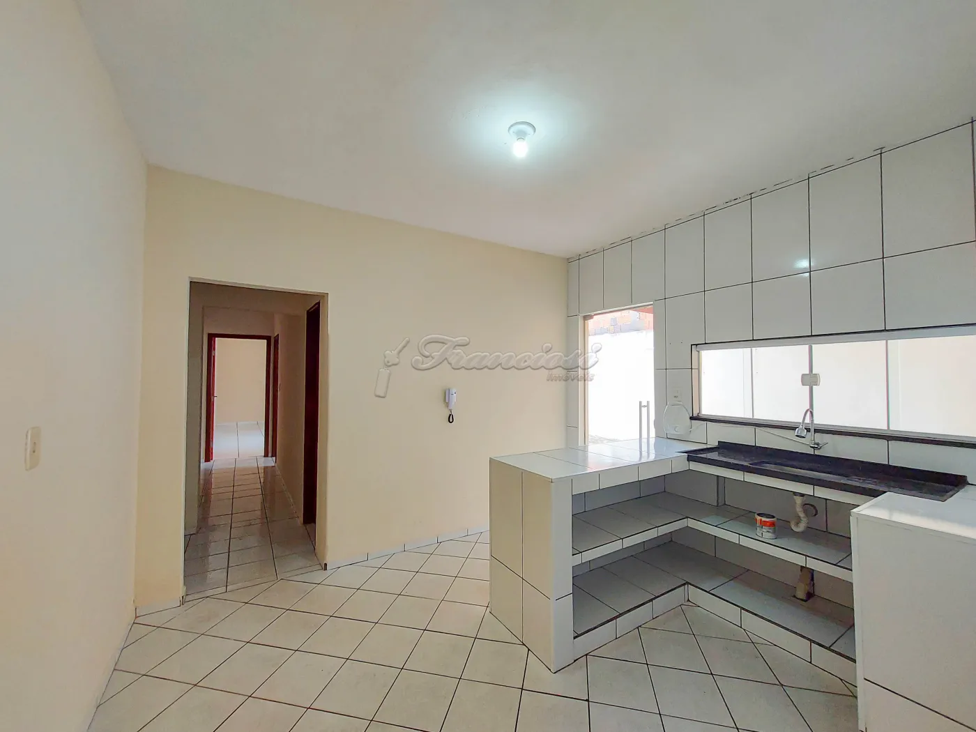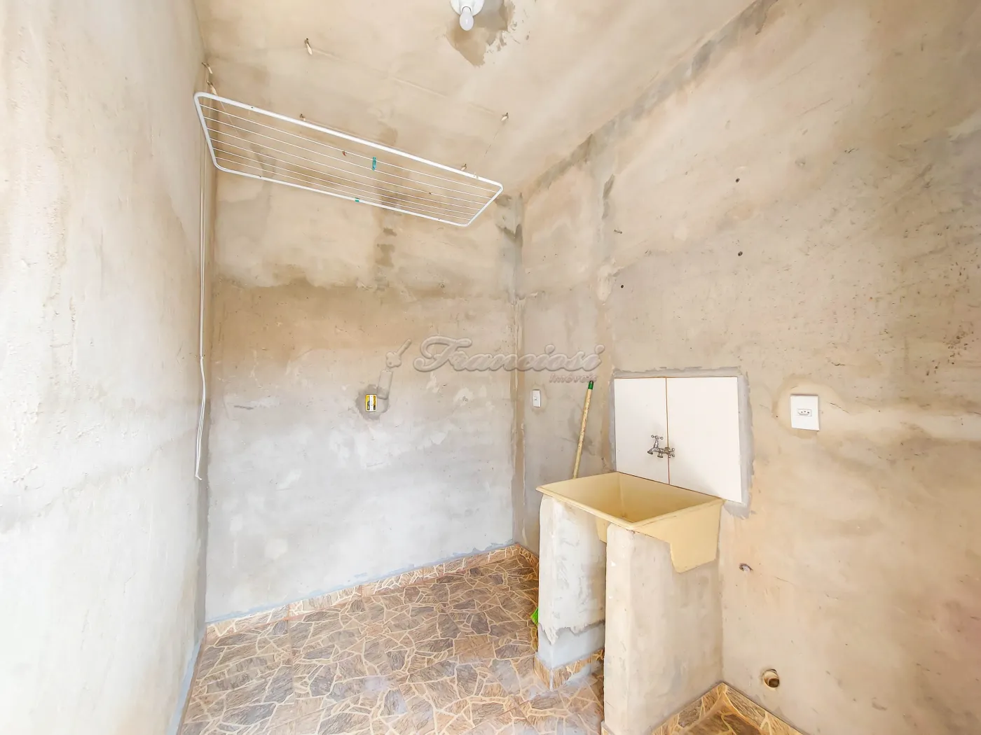 Casa com 2 dormitórios, sala, cozinha, 1 banheiro social, área de serviço coberta, quintal grande cimentado e garagem coberta para 1 carro. Acabamento: laje, taco, piso frio e azulejo.