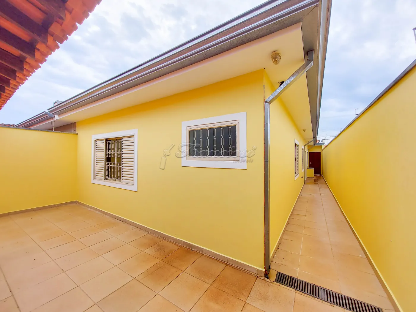 Casa com 3 dormitórios sendo 1 suíte (todos com armário embutido), sala de estar com rack, cozinha com armário modulado, 1 banheiro social com box blindex, área de serviço, churrasqueira, garagem coberta para 1 carro pequeno e entrada para + 2 carros. Acabamento: laje e piso frio.