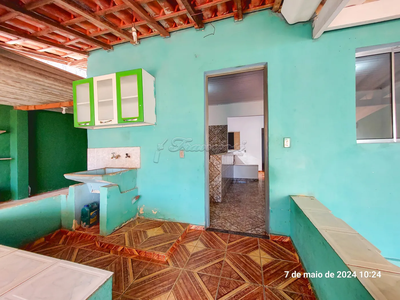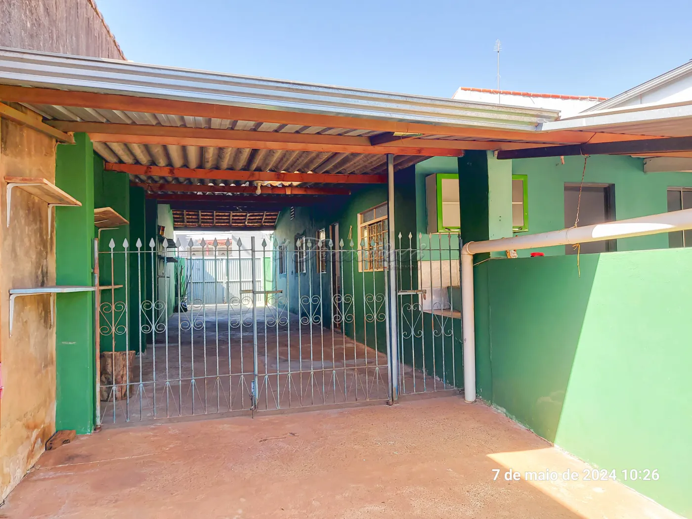 Casa com 2 dormitórios, sala, cozinha, copa, 1 banheiro social com box acrílico, área de serviço, churrasqueira, quintal com grama, garagem coberta para 4 carros e entrada para mais.