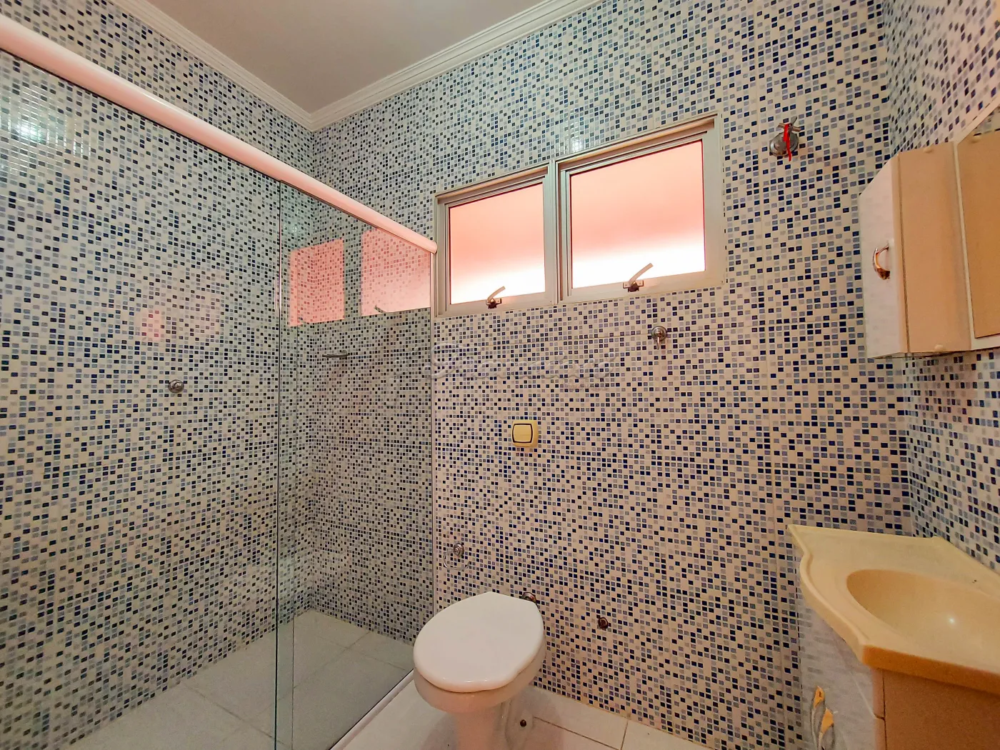 Casa com 3 dormitórios, sala, cozinha, 2 banheiros com box acrílico, área de luz, quintal com piso, área de serviço coberta, quintal e garagem coberta para 2 carros. Acabamento: laje, gesso, piso frio, carpete e azulejo.