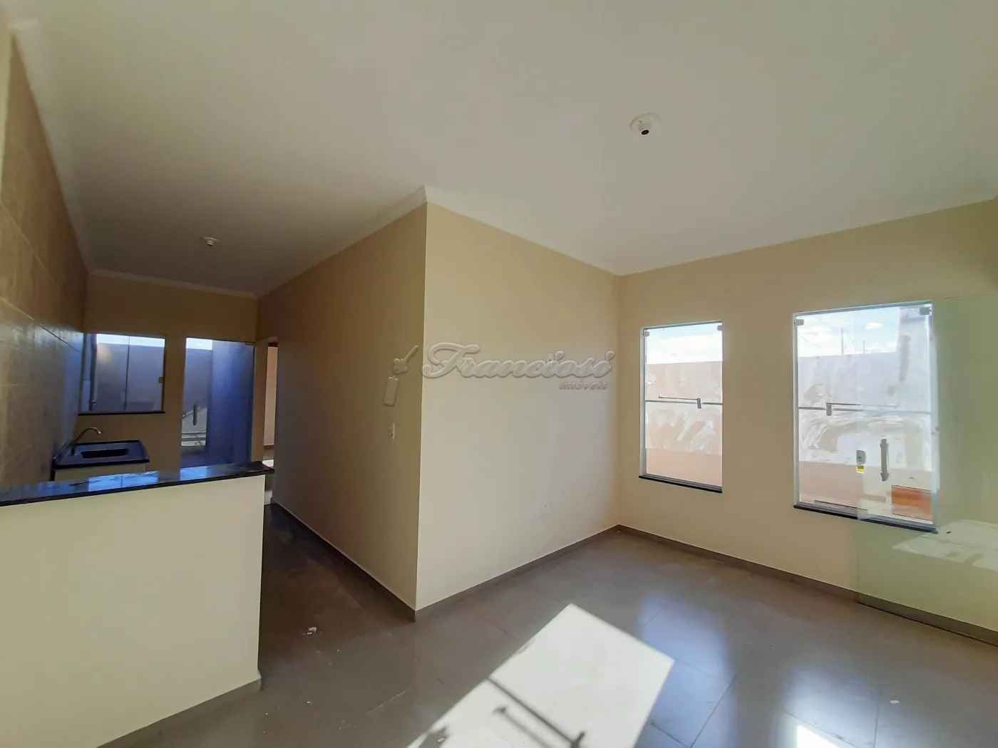 Casa com 2 dormitórios sendo 1 suíte com box blindex, sala de estar, cozinha, 1 banheiro social com box blindex e área de serviço coberta. Sem garagem. Acabamento: laje e piso frio.