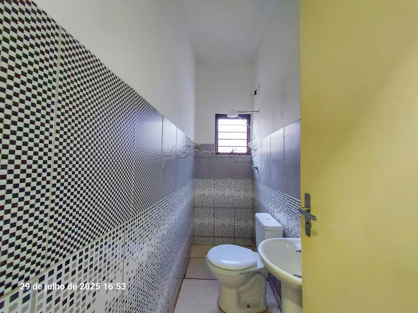 Casa na parte superior com 2 dormitórios sendo 1 com ar condicionado, sala de estar 2 ambientes, cozinha, 1 banheiro social com box acrílico, área de serviço coberta e quintal pequeno. Acabamento: laje, piso frio, taco, cozinha e banheiro azulejados até o teto.