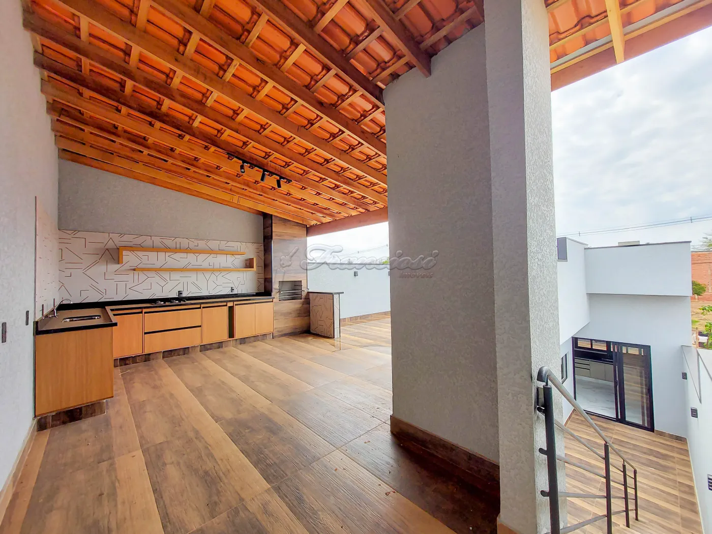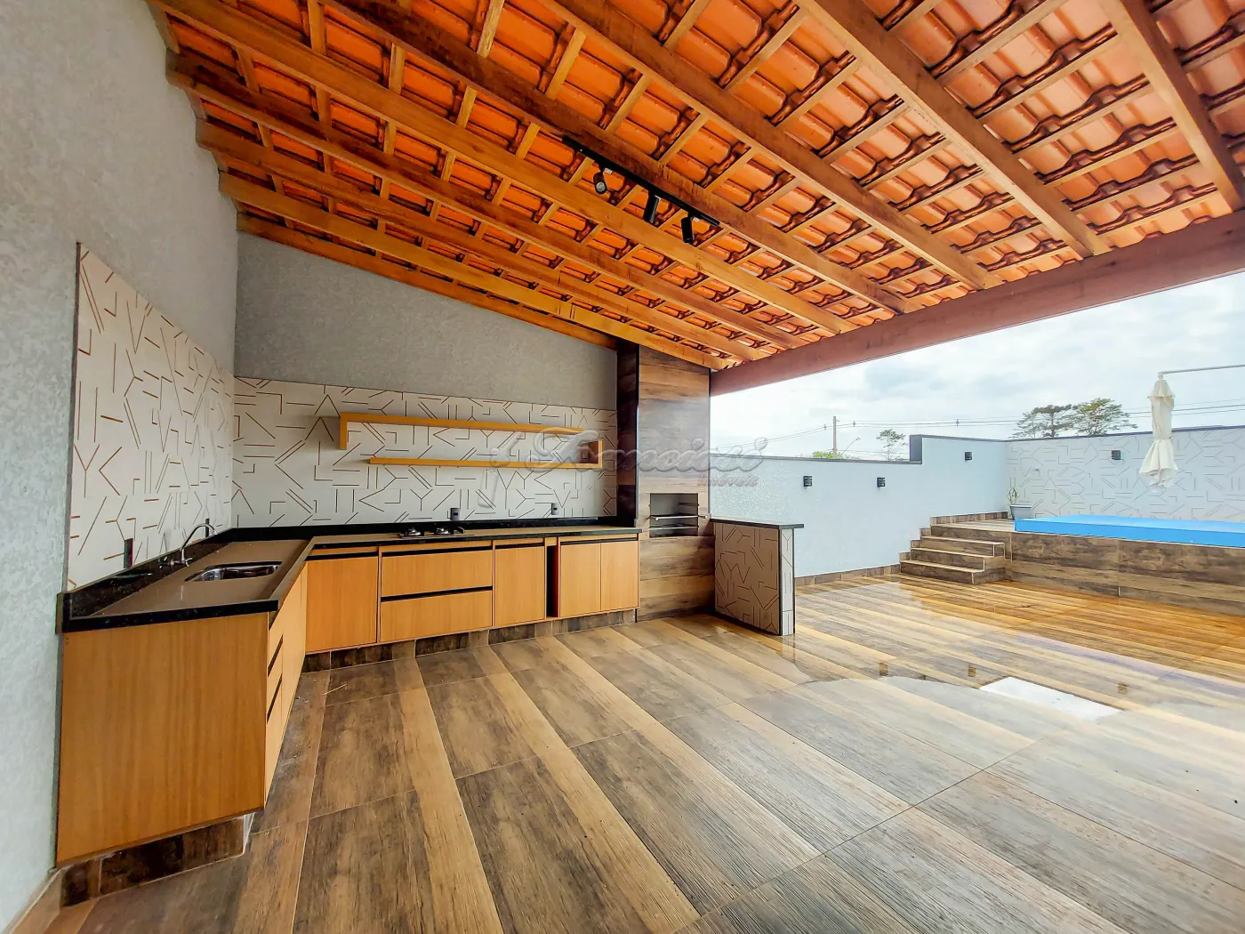 Casa na parte inferior com 3 dormitórios sendo 1 suíte com armário embutido, sala de estar, sala de jantar, cozinha com armário embutido, 1 banheiro, quintal, área gourmet com churrasqueira, piscina, lavanderia, despensa, garagem para 2 carros. Acabamento: forro, piso frio e azulejo, sinteco em 1 dormitório, laminado na sala.