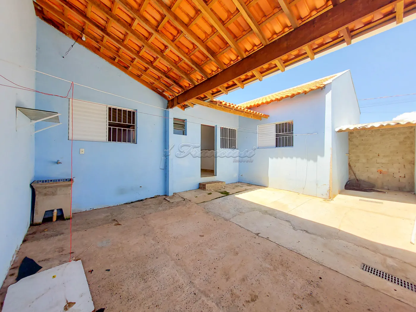 Casa com 2 dormitórios, sala de estar, cozinha, 1 banheiro social, área de serviço coberta e garagem coberta para 1 carro.