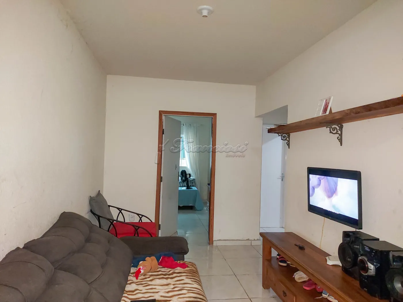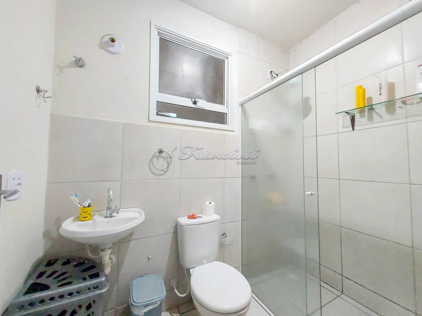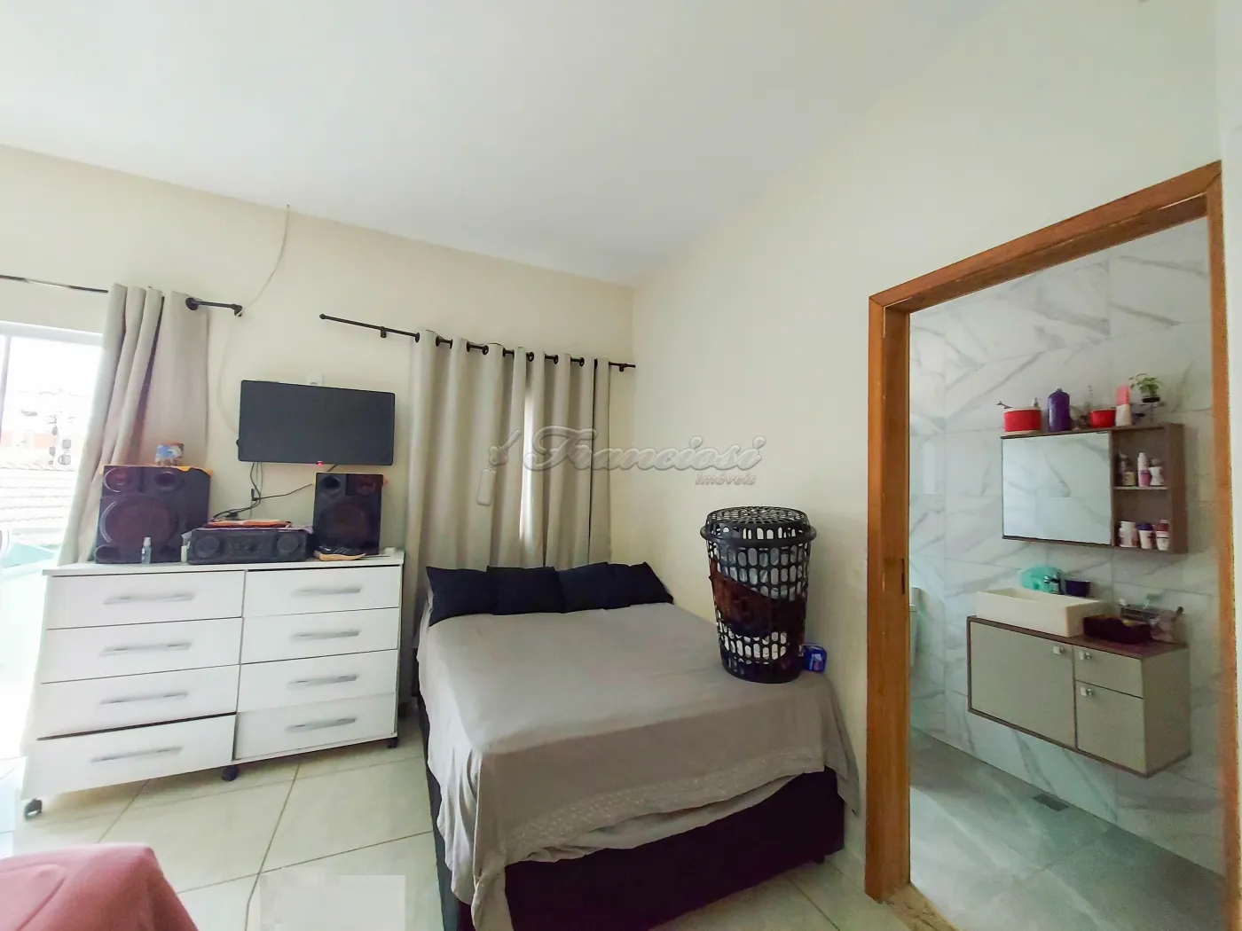 Casa com 3 dormitórios sendo 1 suíte, sala, cozinha, 1 banheiro social com box acrílico, área de serviço coberta, 1 banheiro externo e garagem coberta para 2 carros. Acabamento: laje, piso frio, cozinha e banheiro azulejados até o teto.
