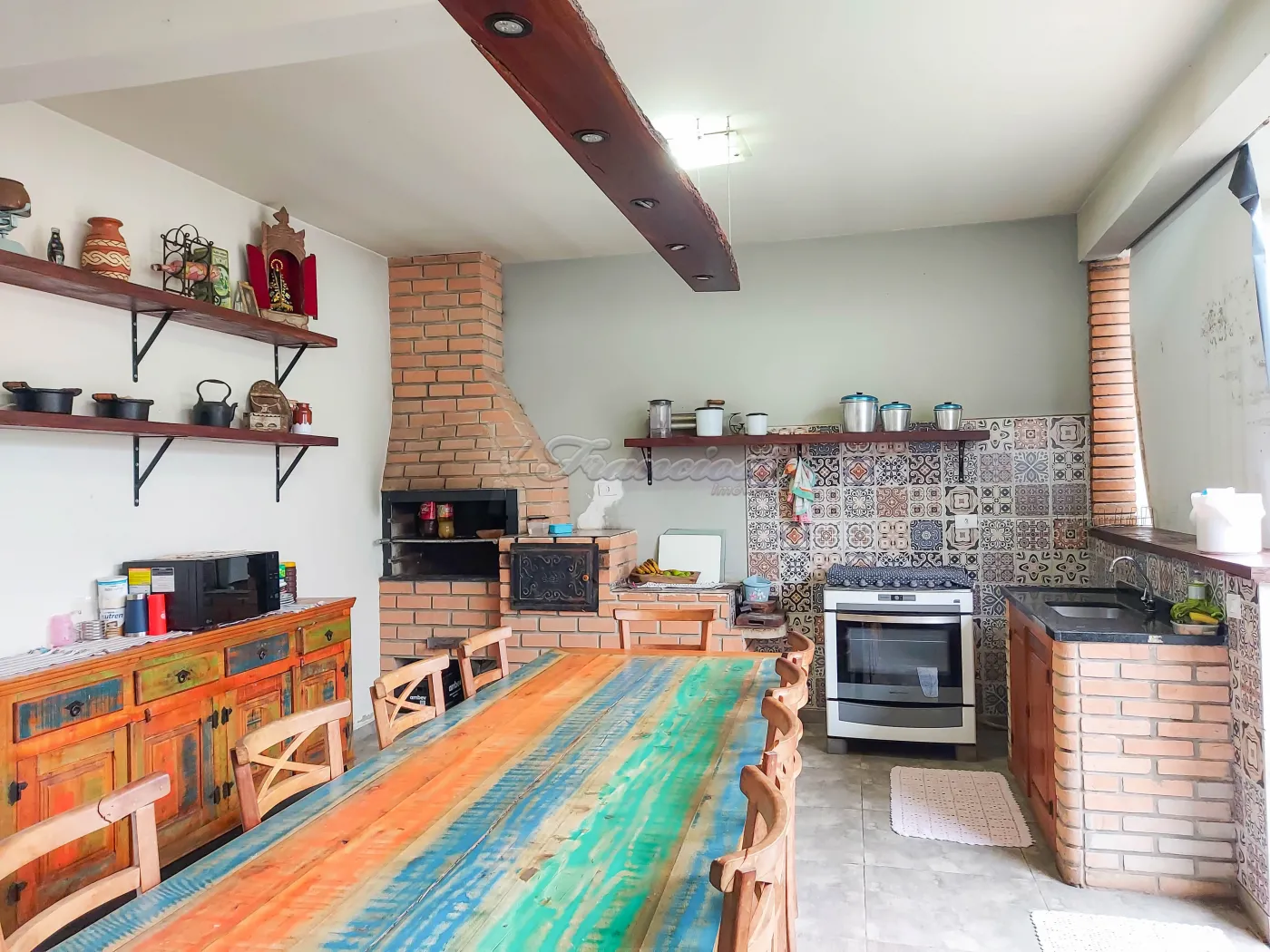 Casa com 3 dormitórios sendo 1 suíte com box blindex, sala de estar, cozinha, 1 banheiro social, 1 lavabo externo, área de lazer com churrasqueira e forno a lenha, quintal e garagem para 2 carros.