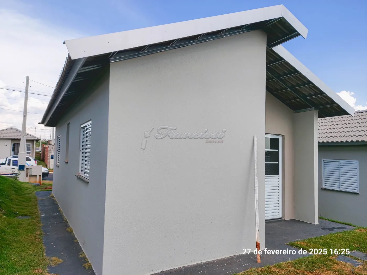 Casa com 2 dormitórios, sala de estar, cozinha com gabinete, 1 banheiro social, área de serviço coberta, quintal cimentado e entrada para 1 carro. Acabamento: laje e piso frio.