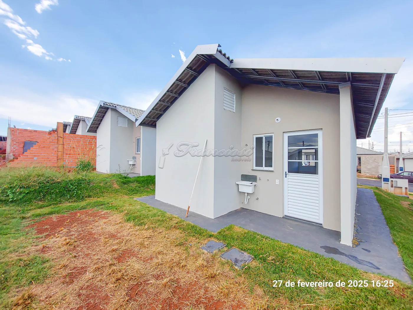 Casa com 2 dormitórios, sala de estar, cozinha, 1 banheiro social, área de serviço, quintal e entrada descoberta para 1 carro.