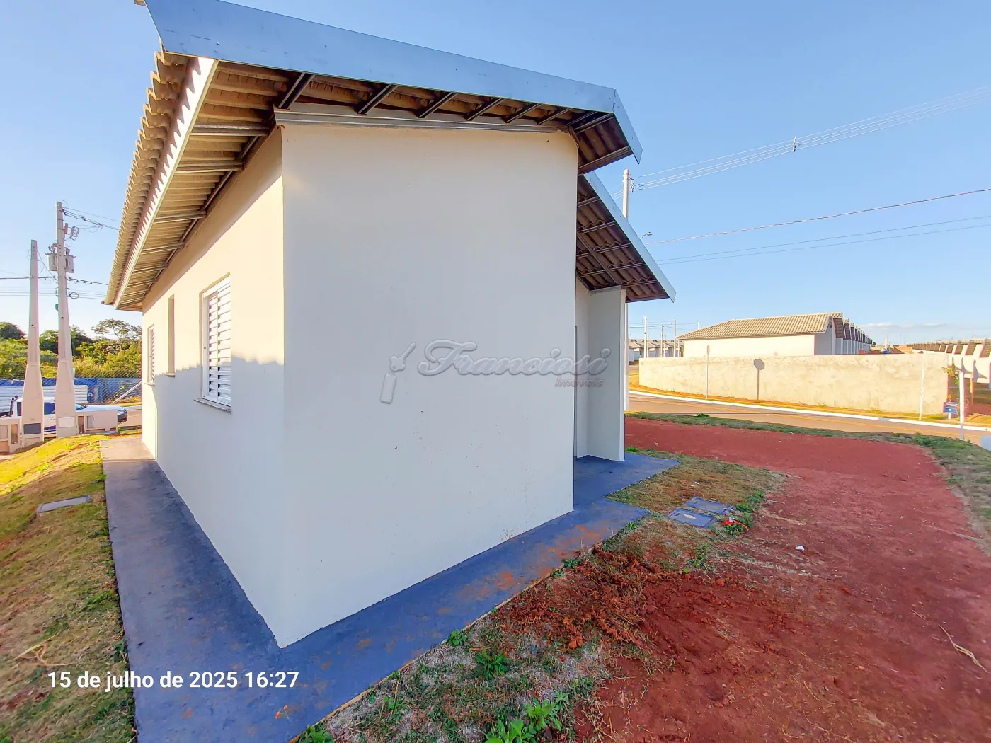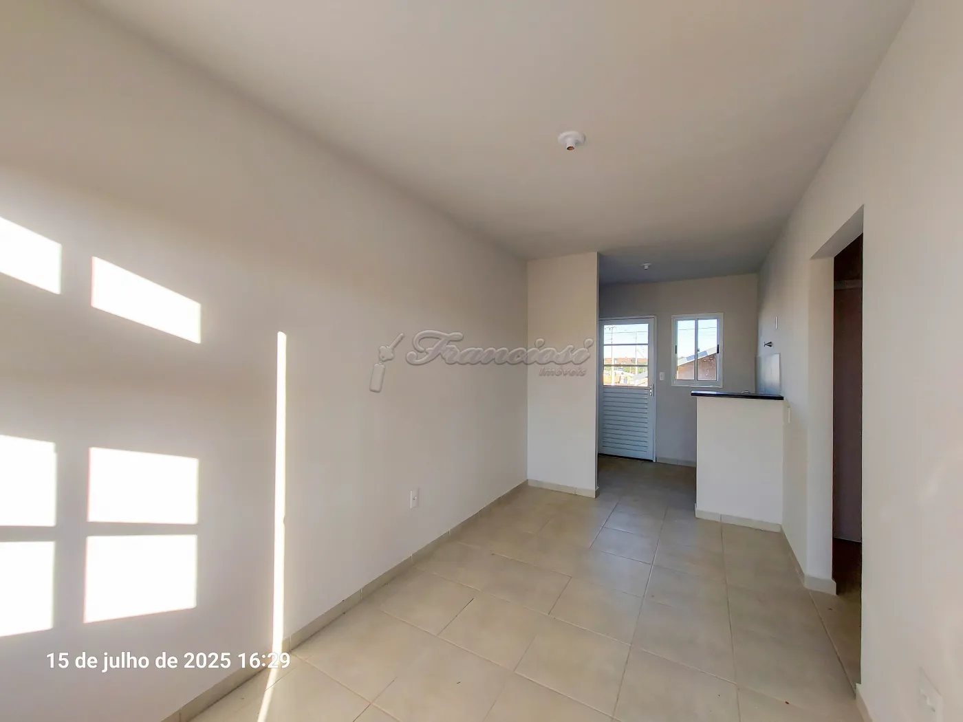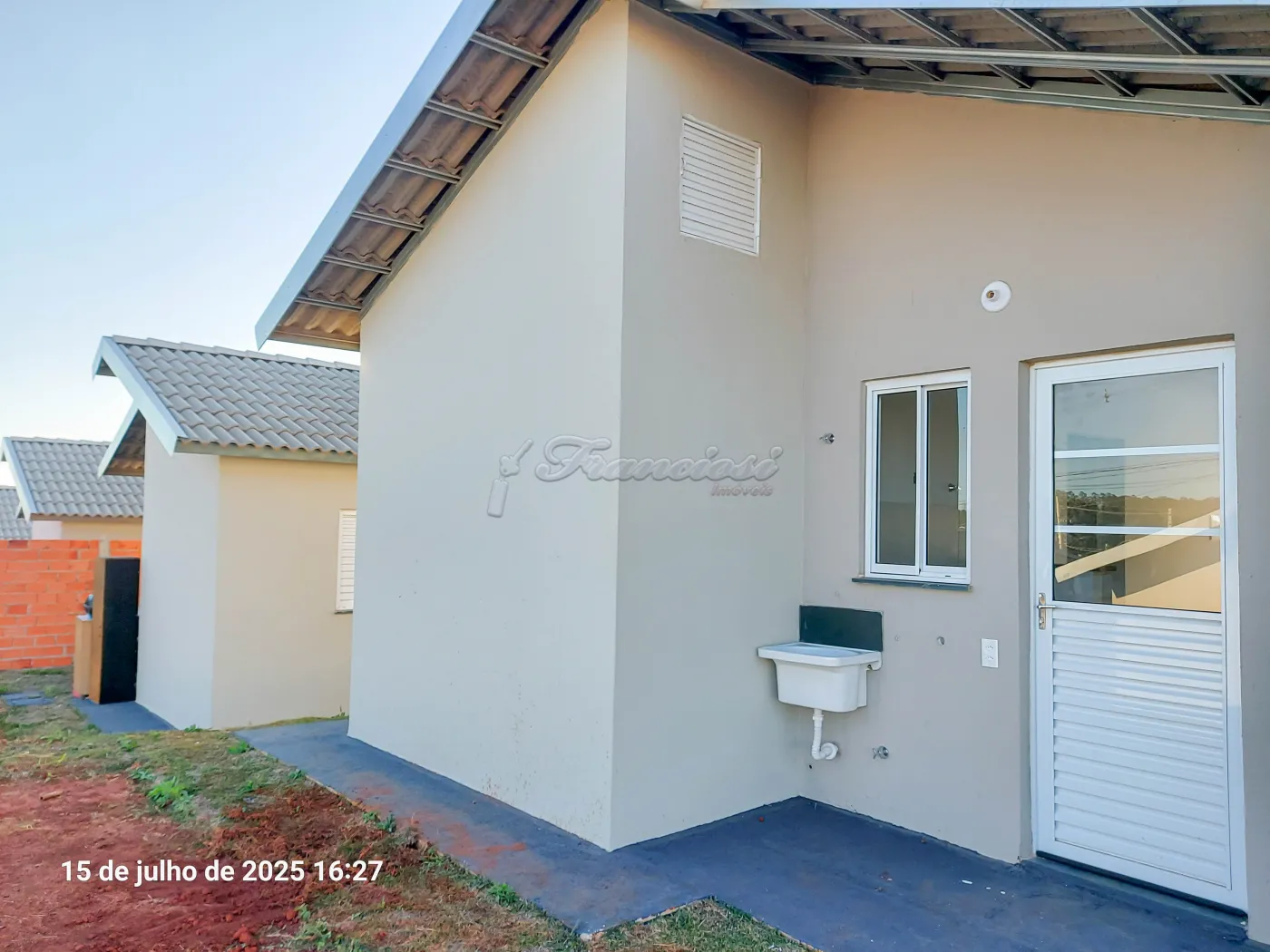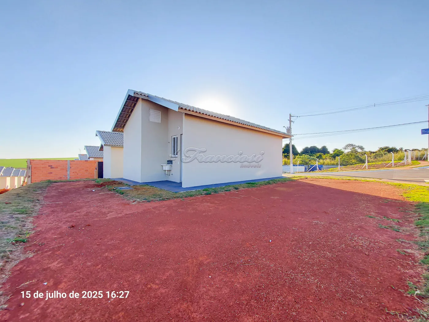 Casa com 2 dormitórios, sala, cozinha, 1 banheiro social com box acrílico, área de serviço coberta, quintal pequeno e garagem coberta para 1 carro. Acabamento: laje, piso frio e azulejo.