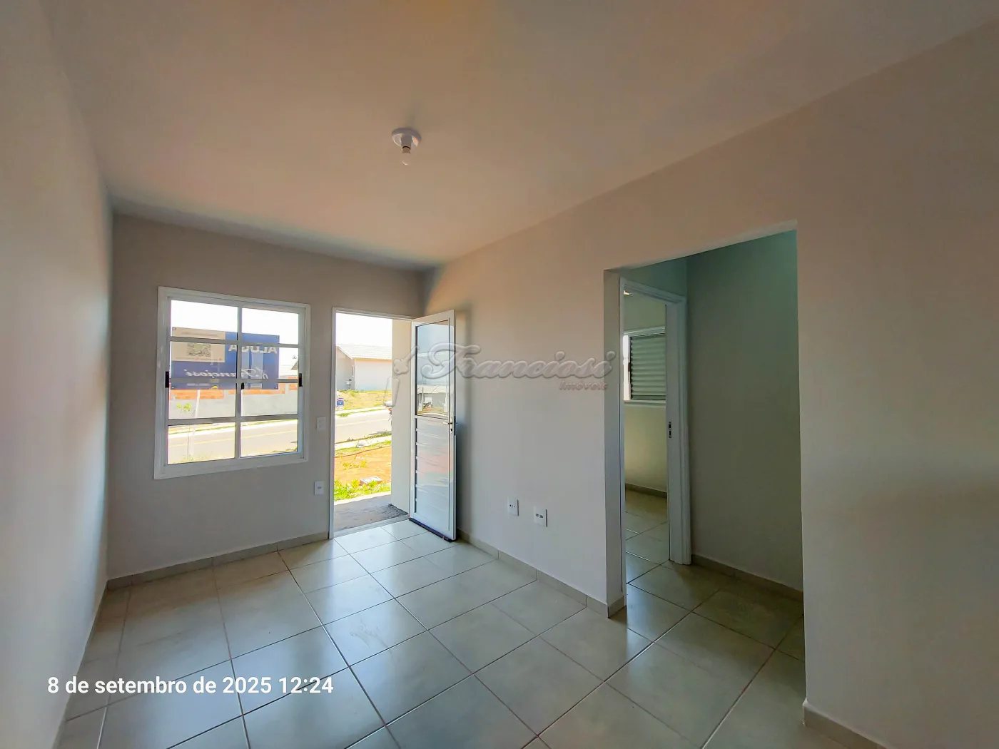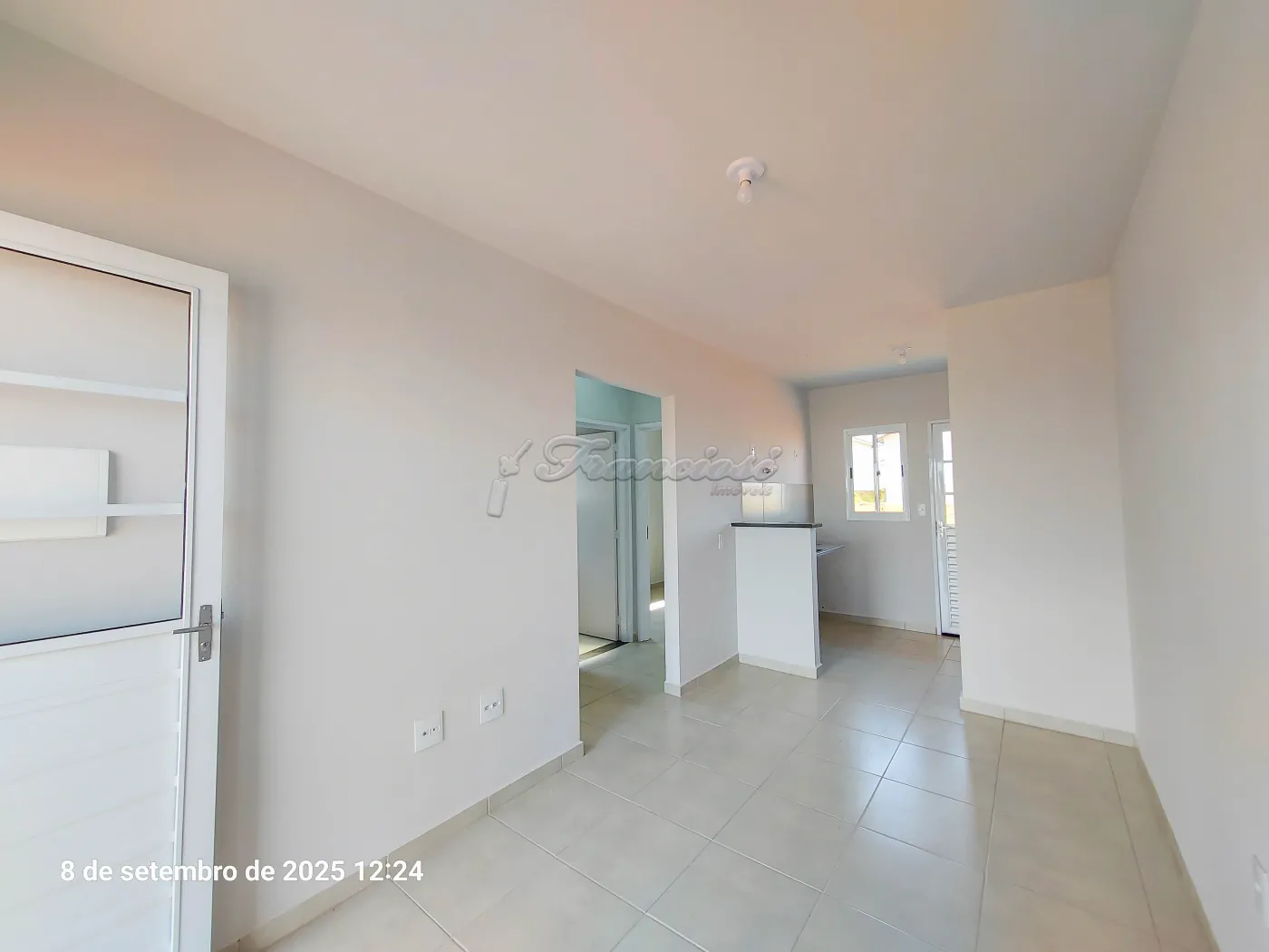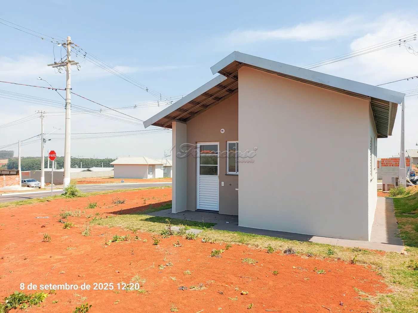 Casa com 2 dormitórios, sala de estar, cozinha, 1 banheiro social, área de serviço, quintal e entrada descoberta para 1 carro. Acabamento: laje e piso frio. Padrão de entrega, sem muro e sem portão.