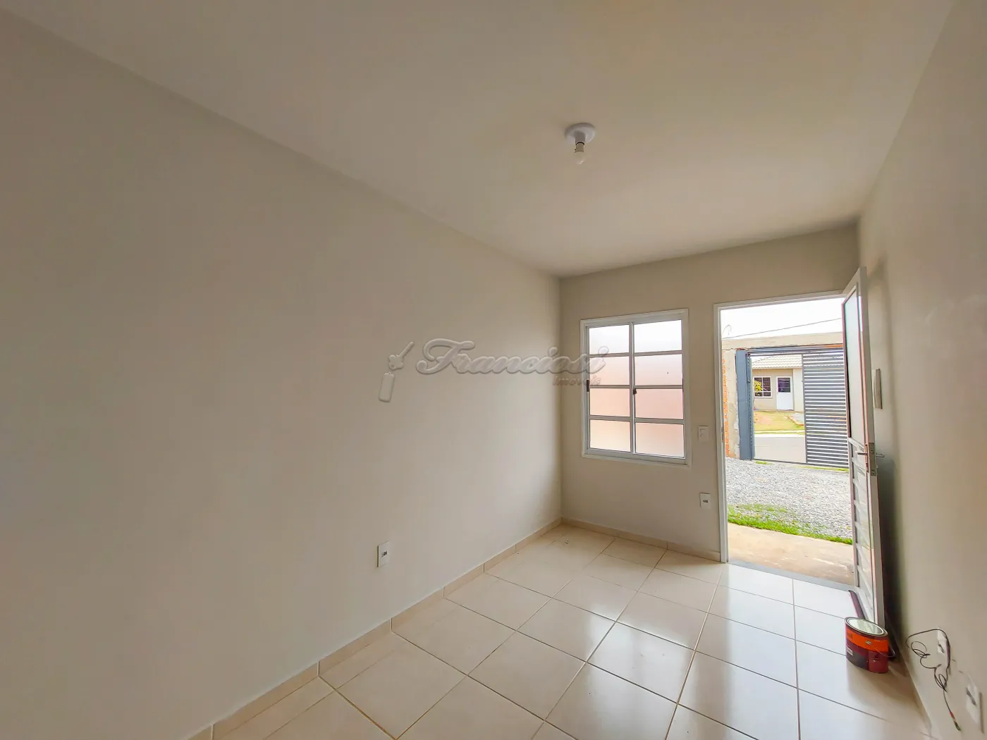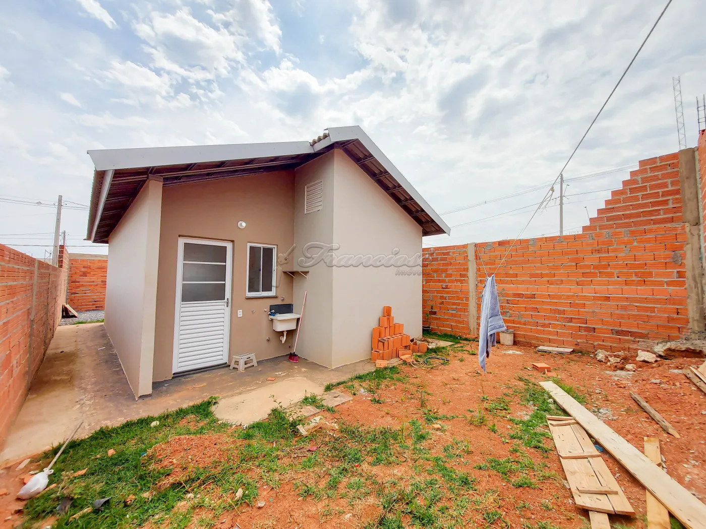 Casa com 2 dormitórios, sala de estar, cozinha, 1 banheiro social, área de serviço, quintal e entrada descoberta para 1 carro. Acabamento: laje e piso frio. Padrão de entrega, sem muro e sem portão.