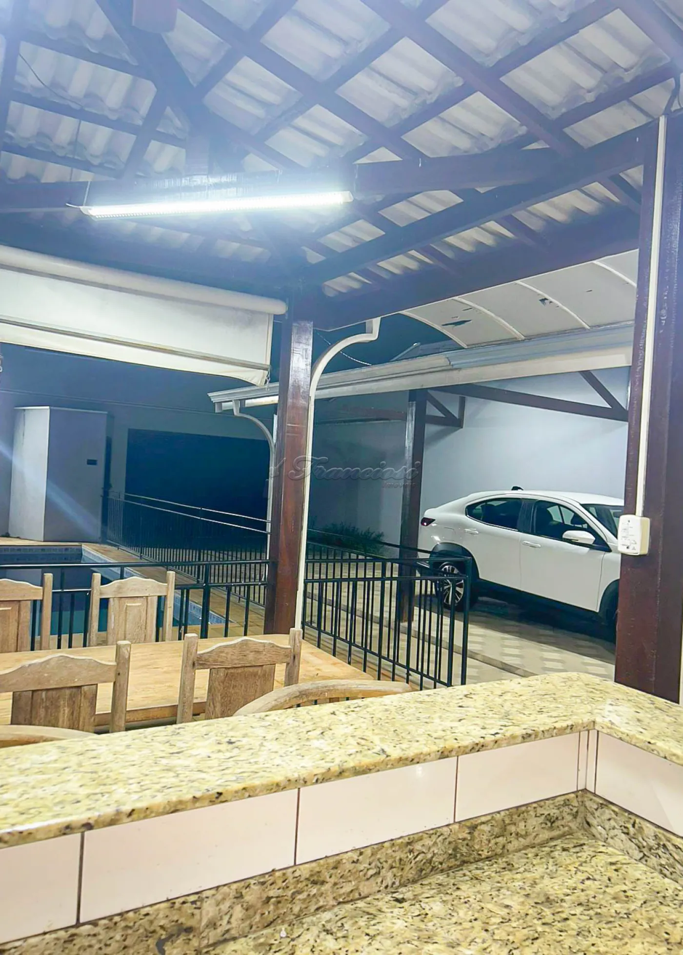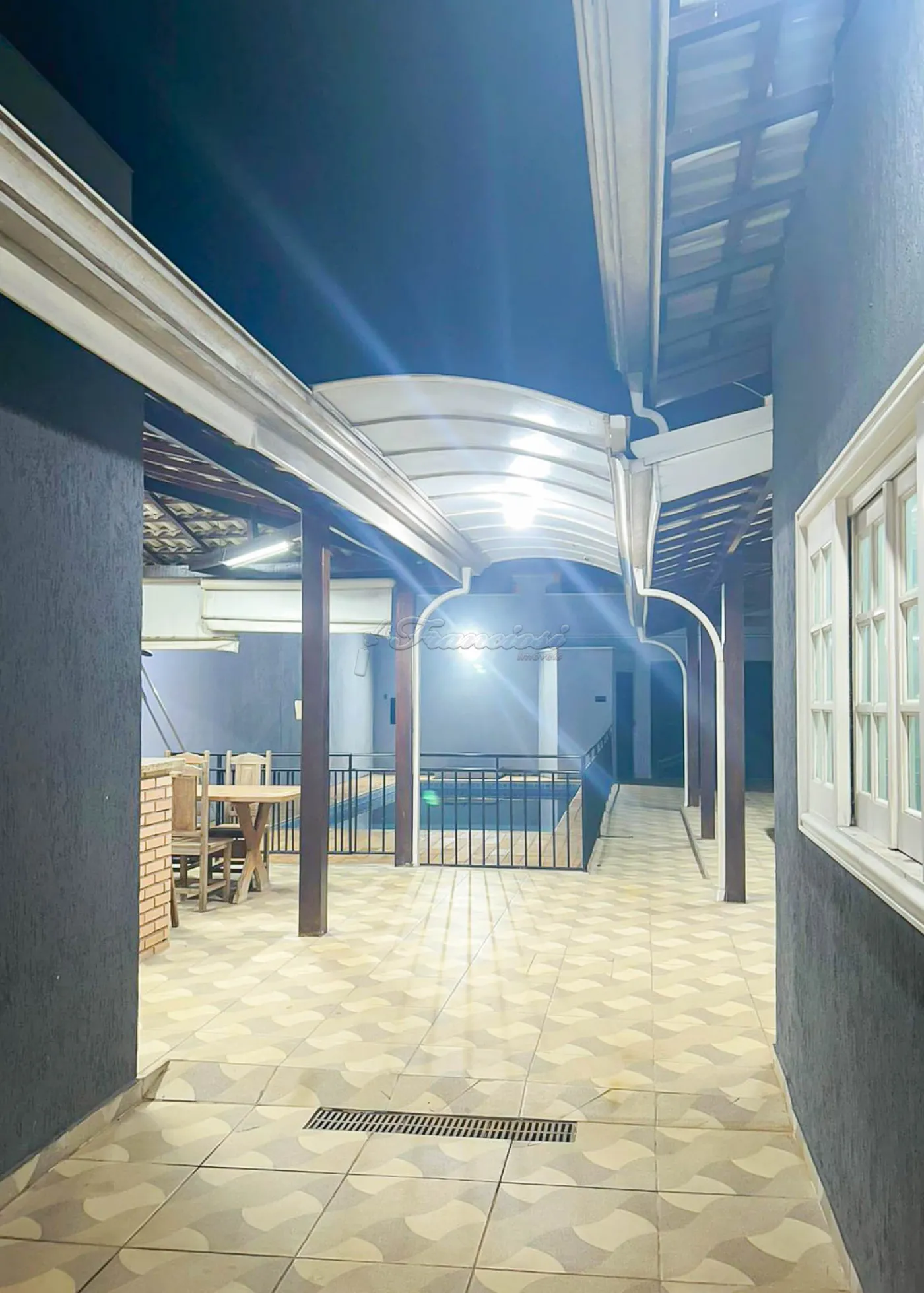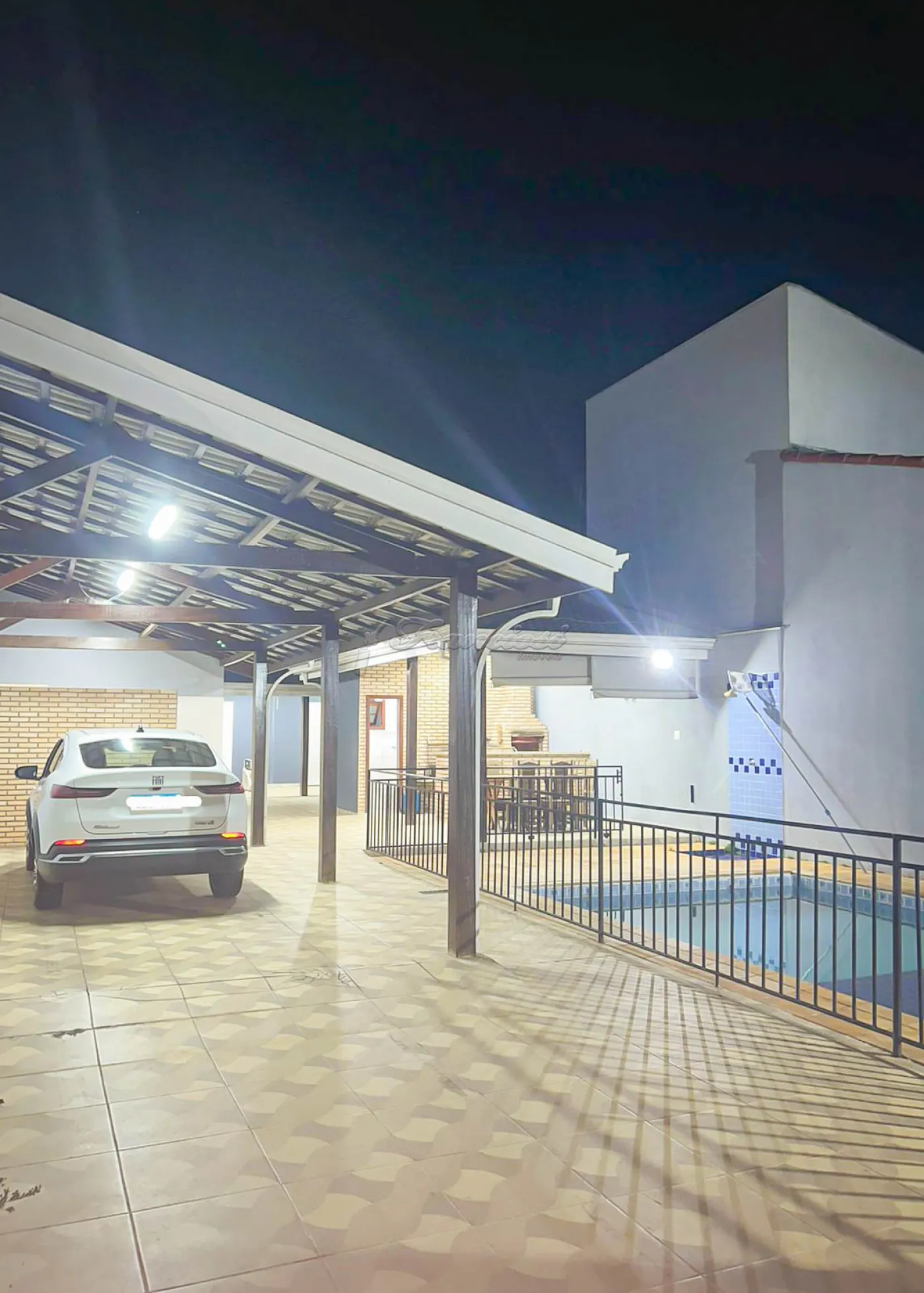 Casa com 3 dormitórios sendo 1 suíte com closet e ar condicionado, sala de estar, cozinha, 1 banheiro social, área de serviço, área gourmet com 1 banheiro, piscina, 1 cômodo externo, garagem coberta para 2 carros e entrada para mais 1.