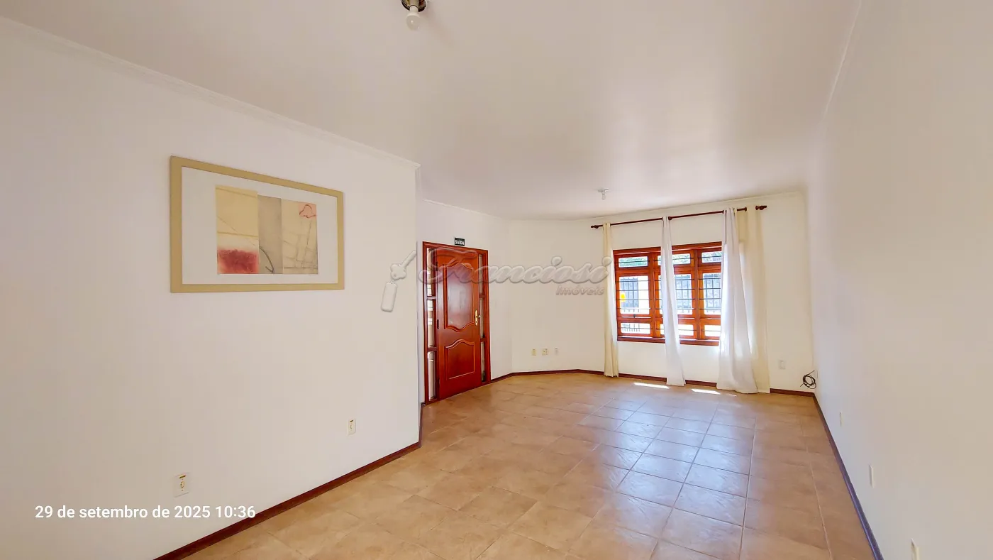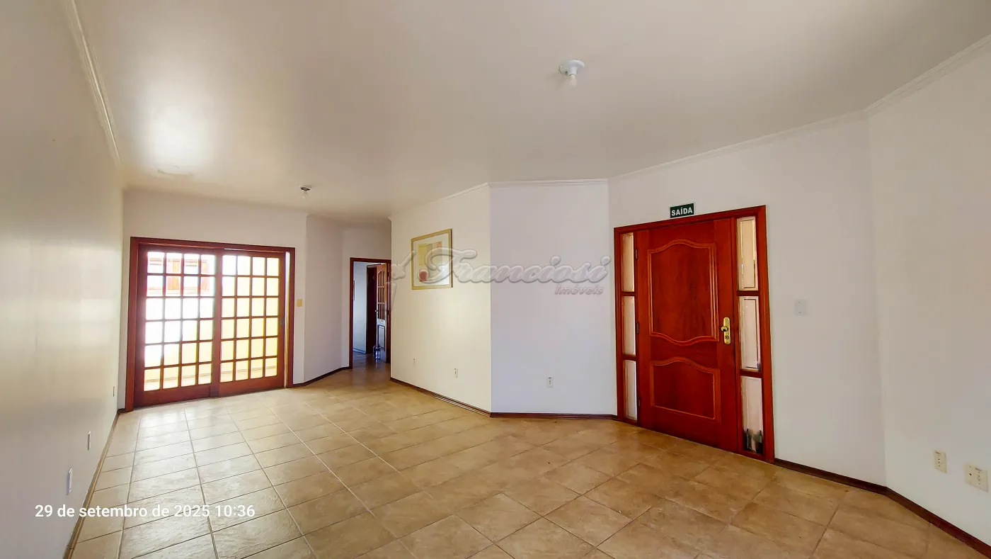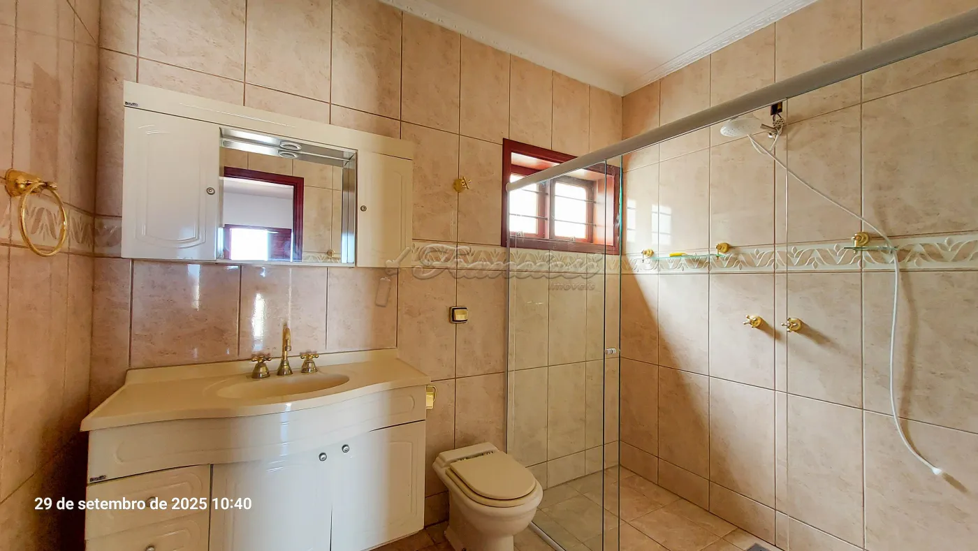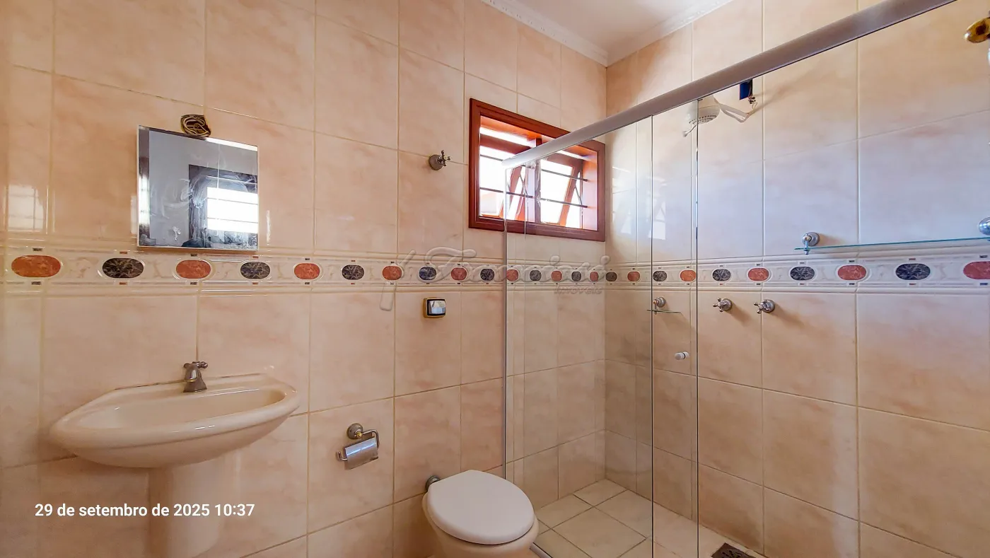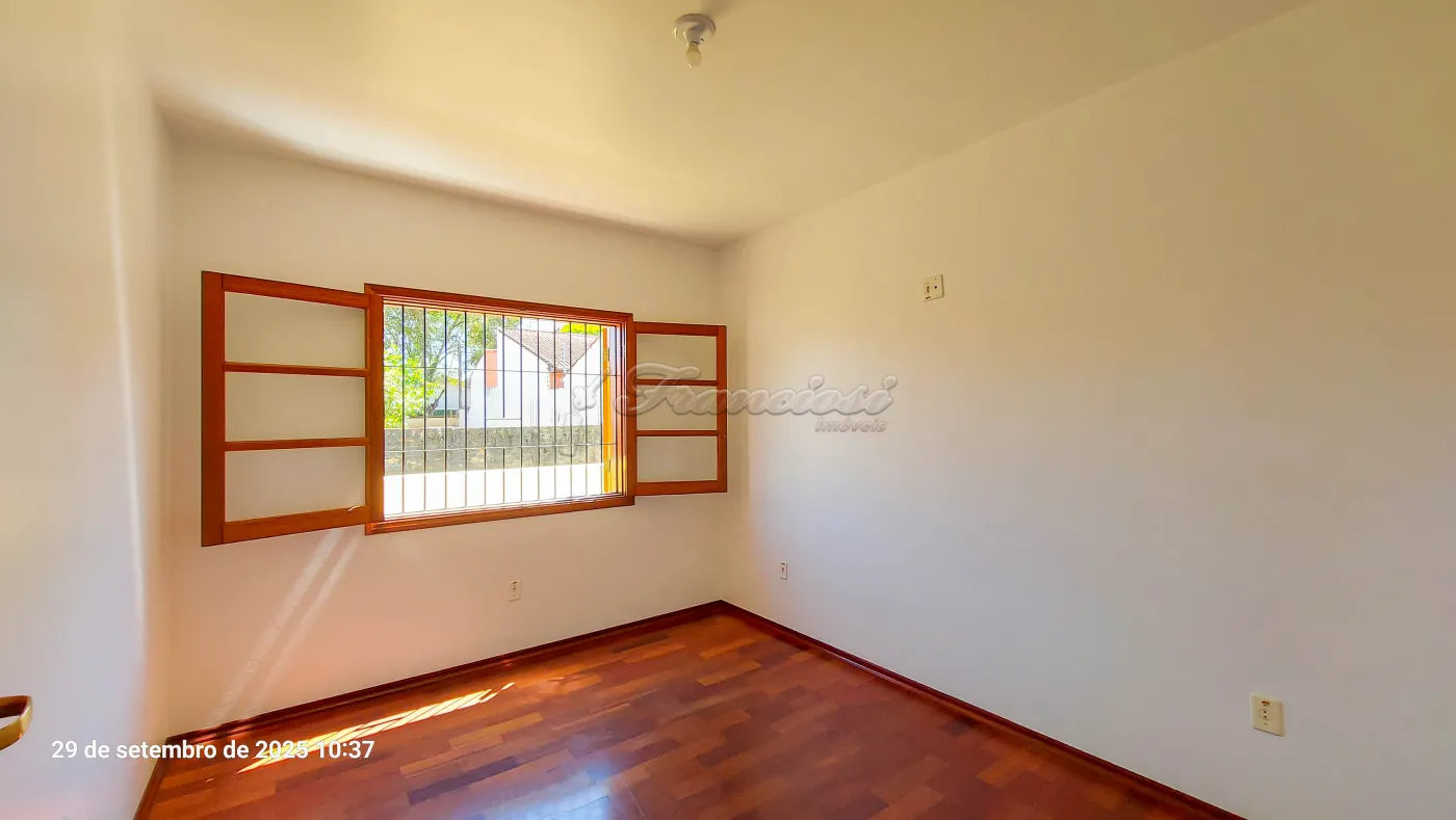 Casa com 3 dormitórios sendo 1 suíte, sala com lareira, cozinha com armário, 1 banheiro social, lavabo, escritório, edícula com 1 dormitório e cozinha, lavanderia, churrasqueira, varanda, quintal, piscina medindo 5 x 3 m², garagem coberta para 2 carros e entrada para 1 carro. Acabamento: laje, taco e piso frio.