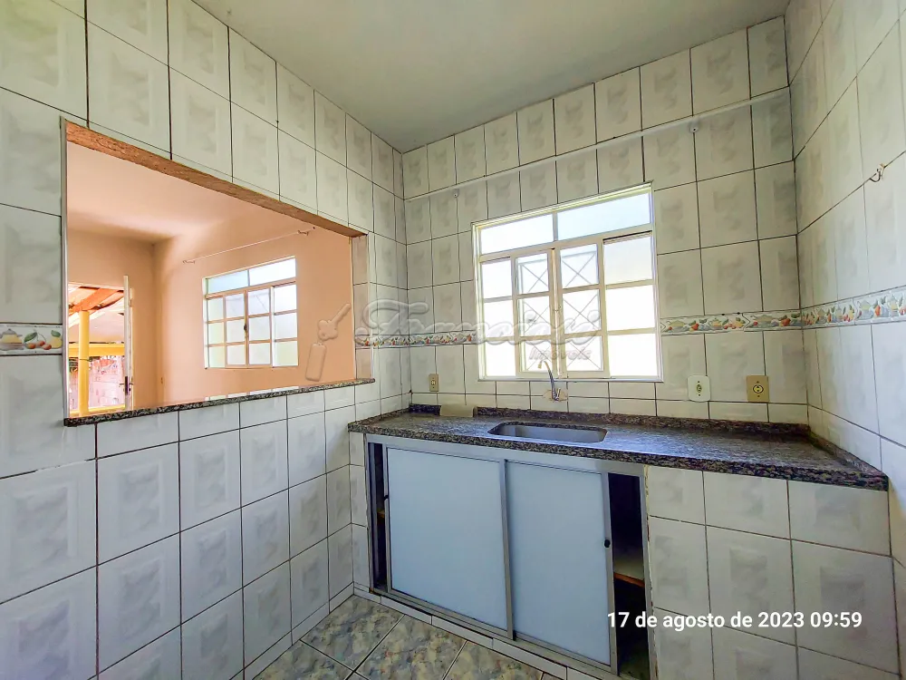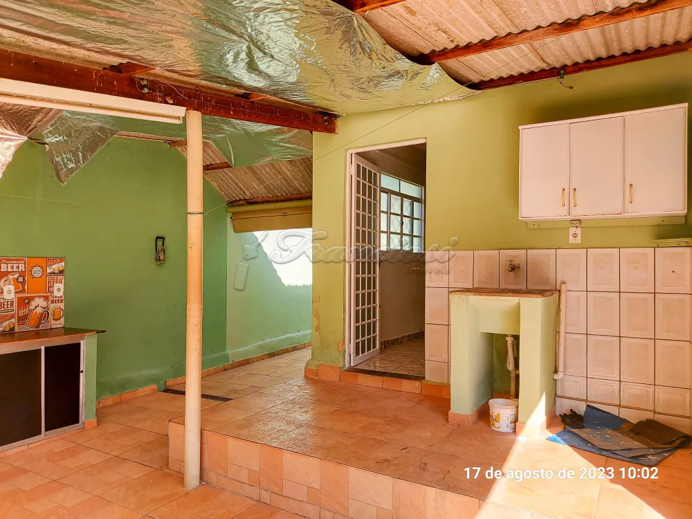 Casa com 2 dormitórios, sala, cozinha com gabinete, 1 banheiro social, área de serviço coberta, churrasqueira, 1 cômodo externo, quintal cimentado e garagem coberta para 1 carro com portão eletrônico. Acabamento: laje e piso frio.