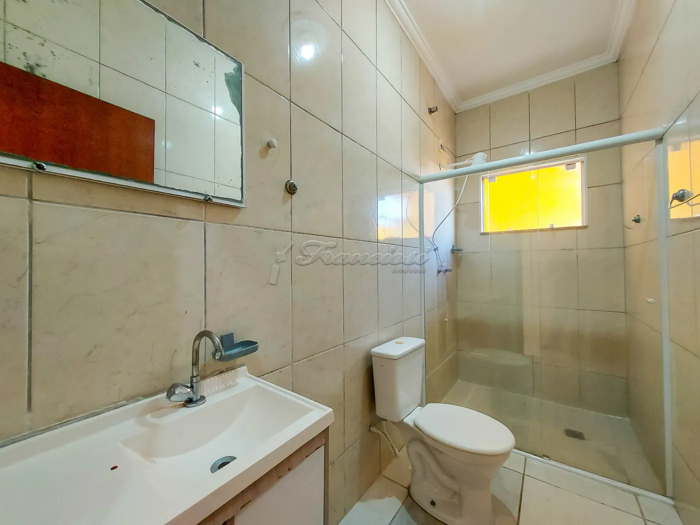 Casa com 3 dormitórios sendo 1 suíte, sala de estar com área de luz, cozinha, 1 banheiro social, área de serviço coberta, quintal pequeno e garagem coberta para 1 carro. Acabamento: laje e piso frio. Entrada compartilhada.