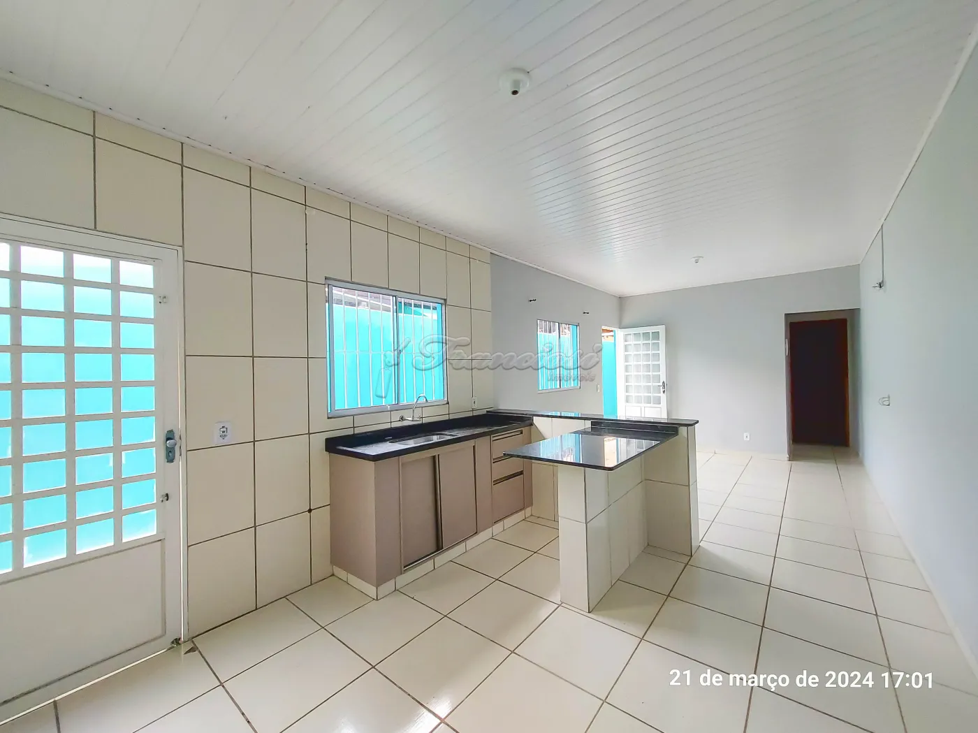 Casa com 3 dormitórios sendo 1 com sacada, sala de estar, cozinha, 1 banheiro social com box acrílico, área de serviço coberta, quintal médio com piso, garagem coberta para 2 carros. Acabamento: laje, piso frio, cozinha e banheiro azulejados até o teto.
