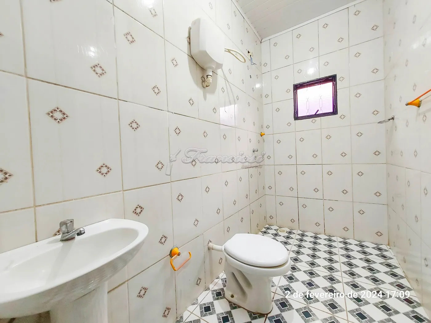 Casa com 1 dormitório, cozinha, 1 banheiro social, área de serviço coberta e quintal cimentado. Sem garagem. Acabamento: Piso vermelhão, piso frio, taco, azulejo da cozinha pela metade e do banheiro até o teto.