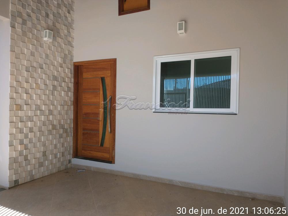 Dispõe de 03 dormitórios, sendo 01 suíte e banheiro social. Na parte inferior, conta com sala de estar integrada à sala de jantar, lavabo, quintal e garagem. Acabamento em laje, piso frio, azulejo e piso Paviflex nos quartos.