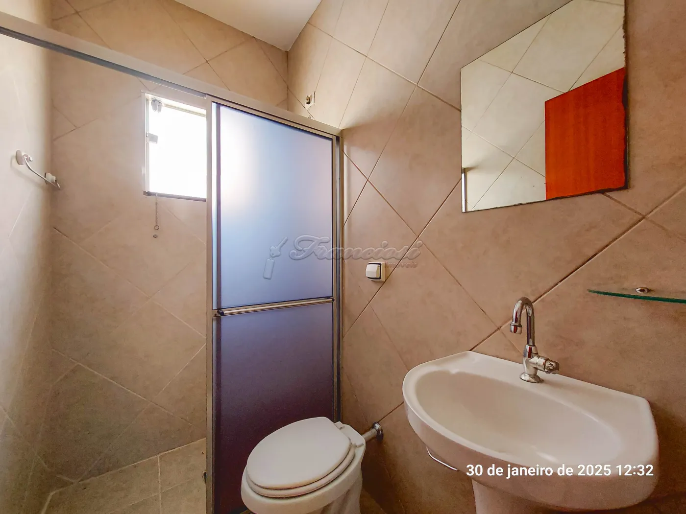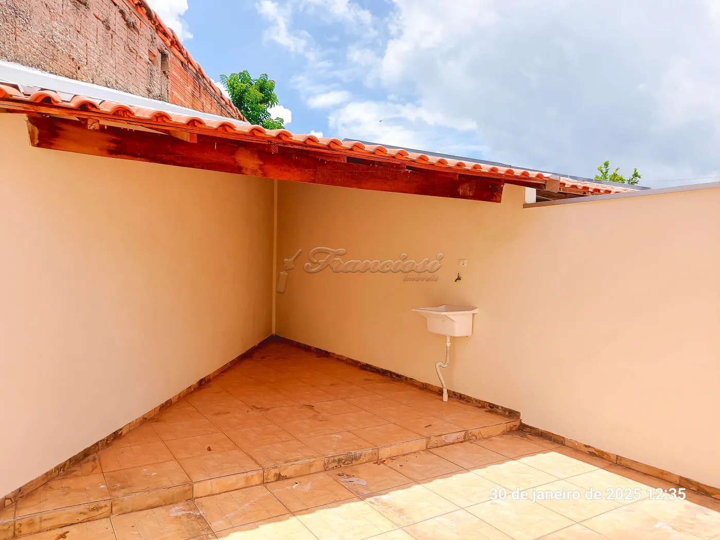 Casa com 3 dormitórios, 2 banheiros sendo 1 externo, sala, copa, cozinha, área de serviço, quintal grande cimentado, vaga de garagem coberta para 1 carro e descoberta para mais carros. Acabamento: laje, taco, piso frio, cozinha e banheiro sem azulejos.