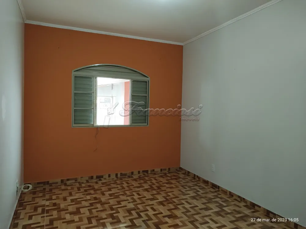 Casa com 3 dormitórios, sala de estar, copa, cozinha com armário embutido, 1 banheiro social com box acrílico, área de serviço coberta, quintal, área de lazer com churrasqueira e 1 banheiro externo, garagem coberta para 2 carros. Acabamento: laje, piso frio e azulejo.