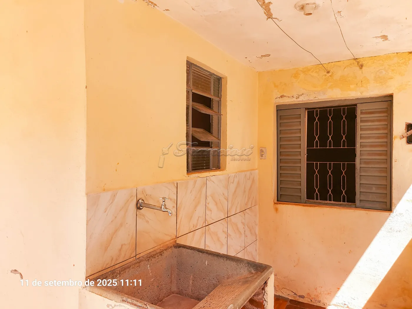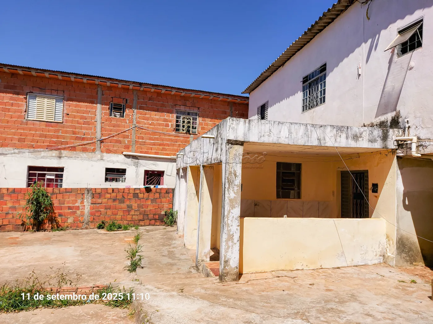 Casa da frente com 2 dormitórios, sala, cozinha, 1 banheiro social, área de serviço, quintal grande com terra e garagem para 2 carros.