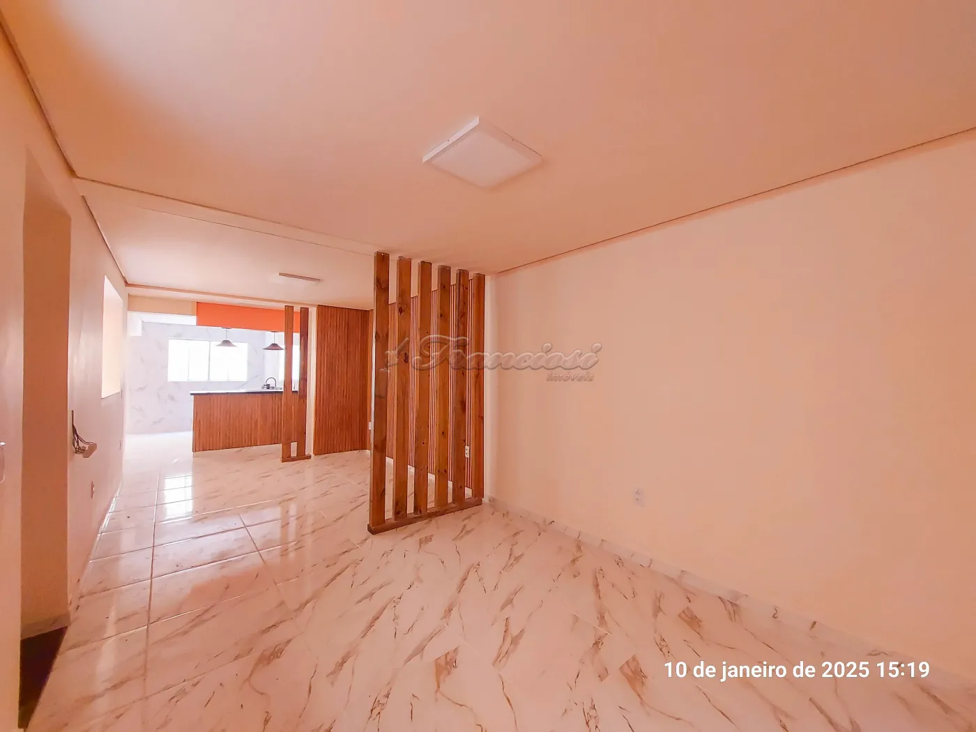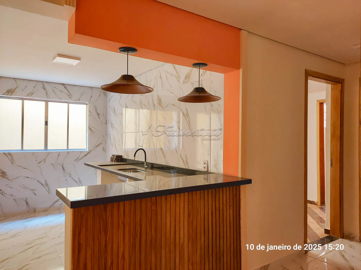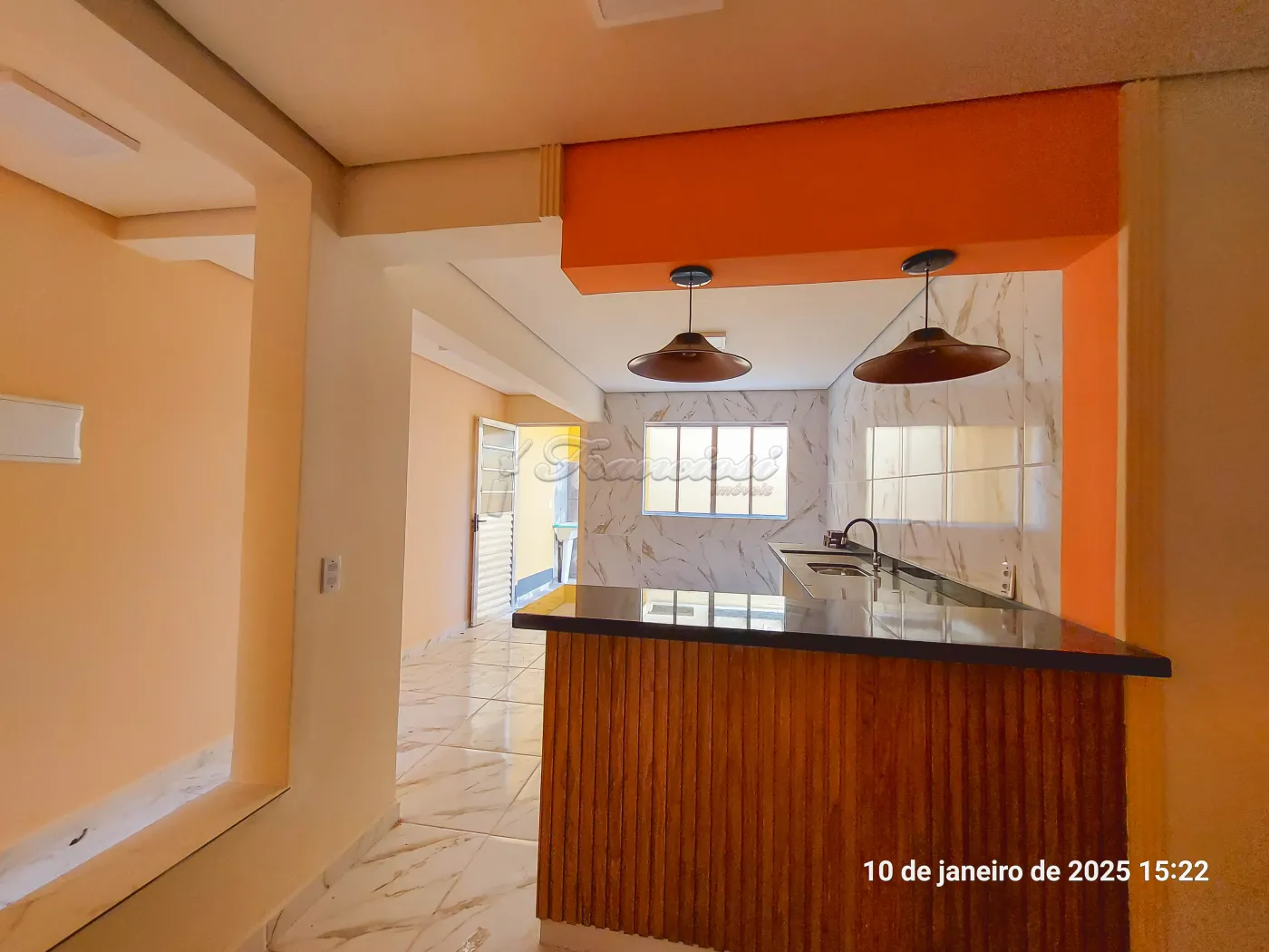 Casa com 2 dormitórios sendo 1 suíte com box blindex, sala de estar, cozinha, 1 banheiro social com box blindex e área de serviço coberta. Sem garagem.