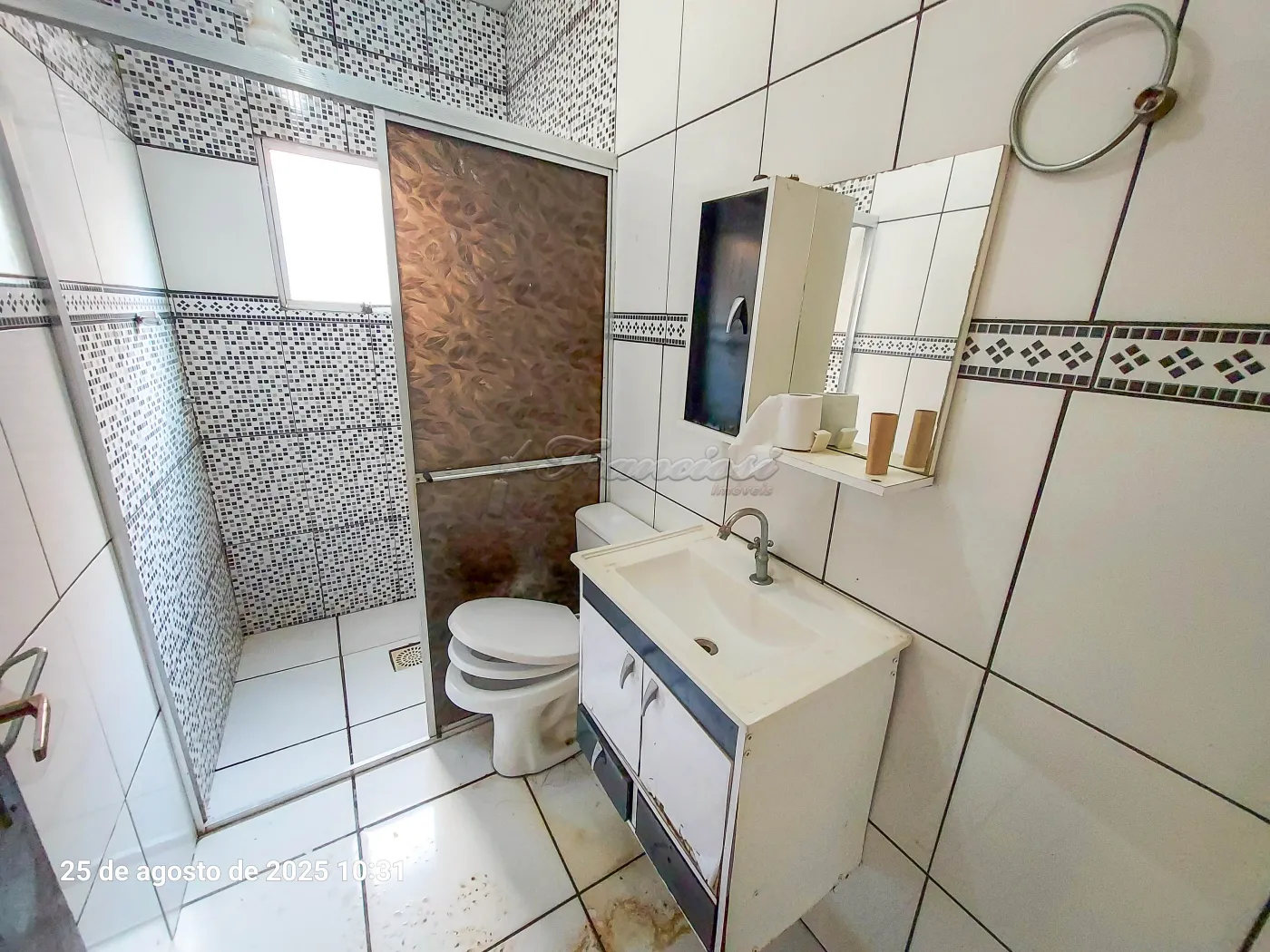 Casa com 3 dormitórios sendo 1 suíte, sala, cozinha, 1 banheiro social com box acrílico, área de serviço coberta, 1 banheiro externo e garagem coberta para 2 carros. Acabamento: laje, piso frio, cozinha e banheiro azulejados até o teto.