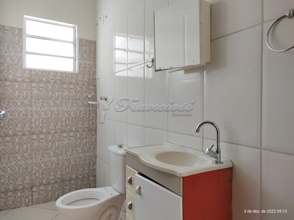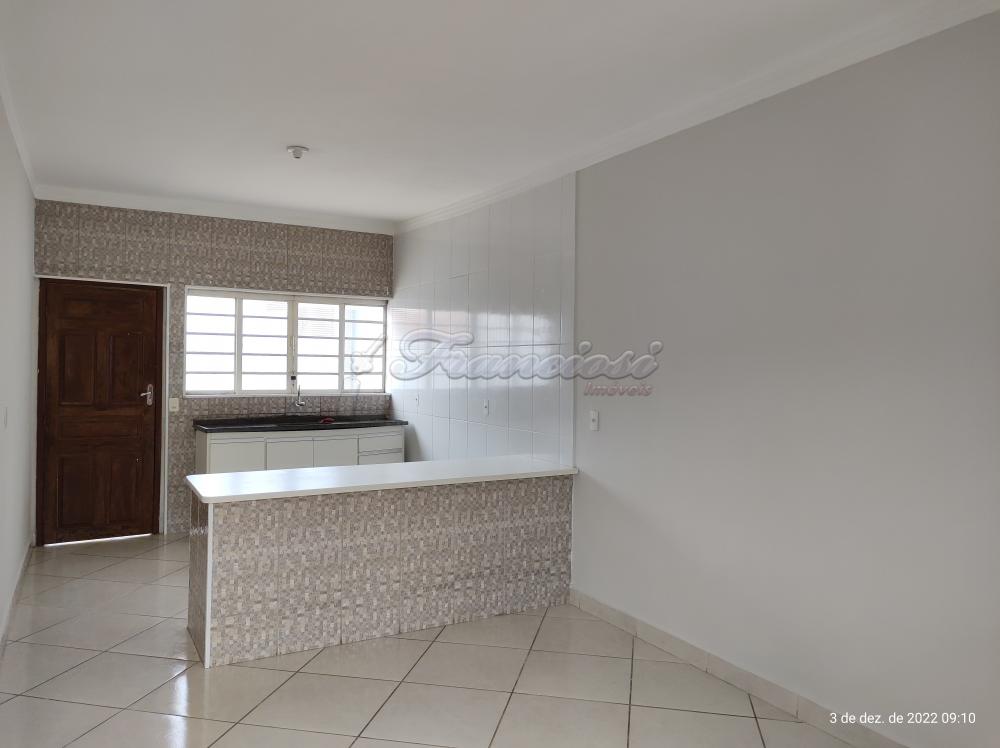 Casa com 3 dormitórios, sala, cozinha, 1 banheiro social, área de serviço, quintal pequeno e garagem coberta para 1 carro.