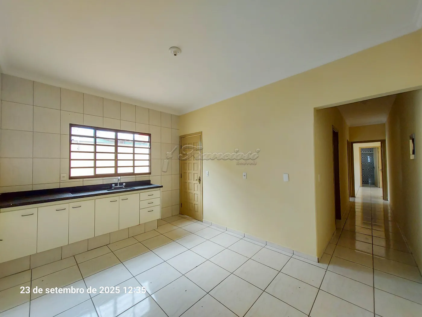 Casa com 3 dormitórios sendo 1 suíte, sala, cozinha, 1 banheiro social com box acrílico, área de serviço coberta, quintal cimentado pequeno e garagem coberta para 1 carro. Acabamento: laje, piso frio, cozinha e banheiro azulejados até o teto.