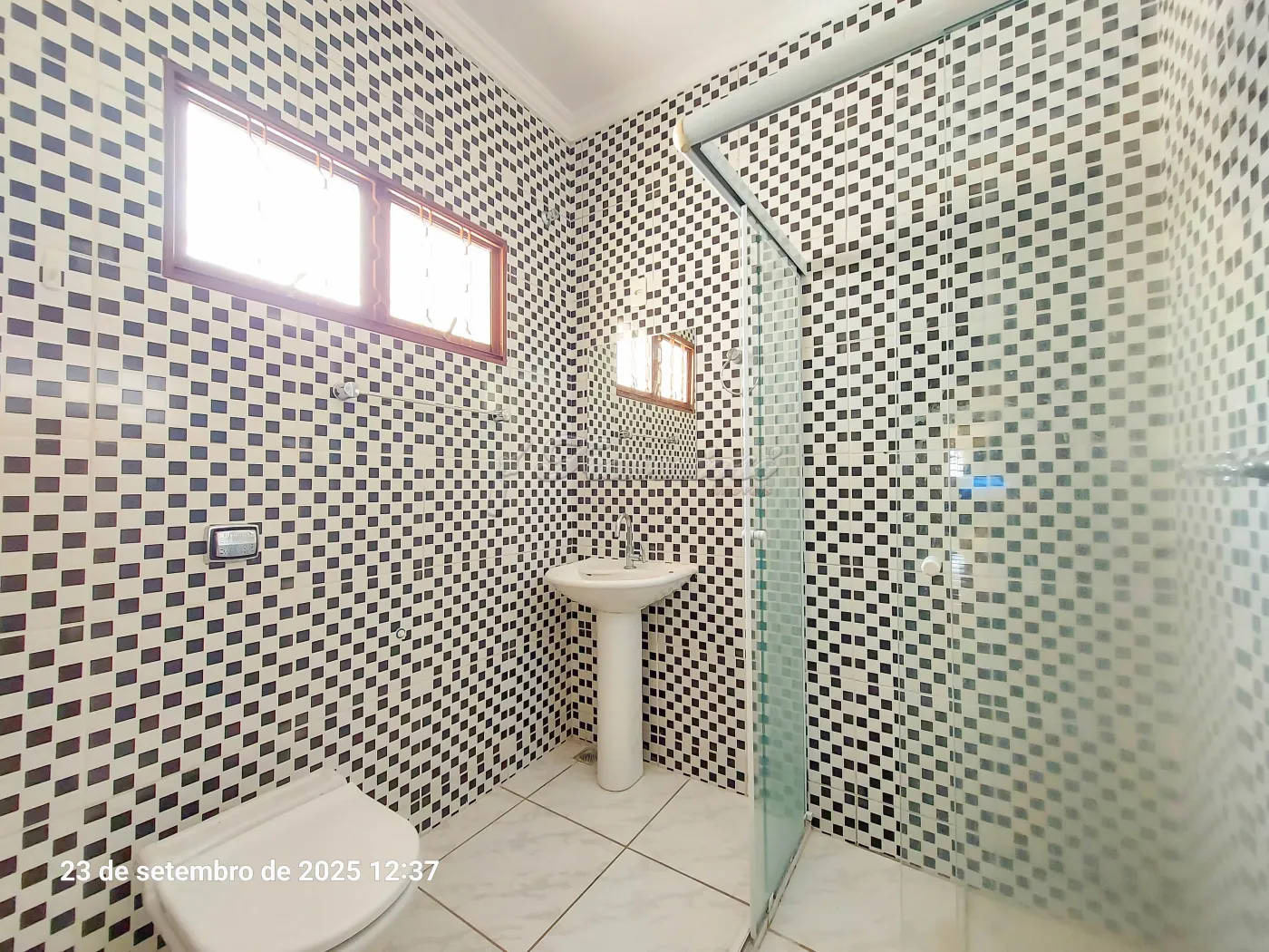 Casa com 1 suíte, cozinha aberta, 1 banheiro social com box blindex, churrasqueira, quintal grande com gramado, piscina, garagem para 3 carros com portão eletrônico. Cerca elétrica. Acabamento: laje, piso frio e azulejo.