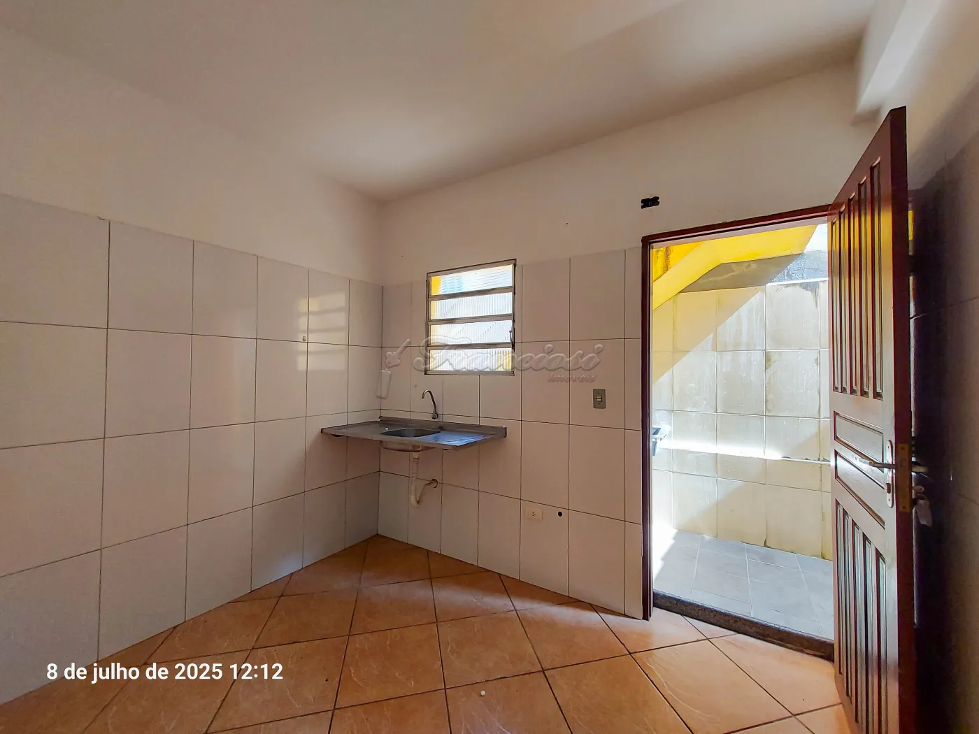 Casa com 1 dormitório, sala de estar, cozinha, 1 banheiro social, área de serviço e quintal pequeno.