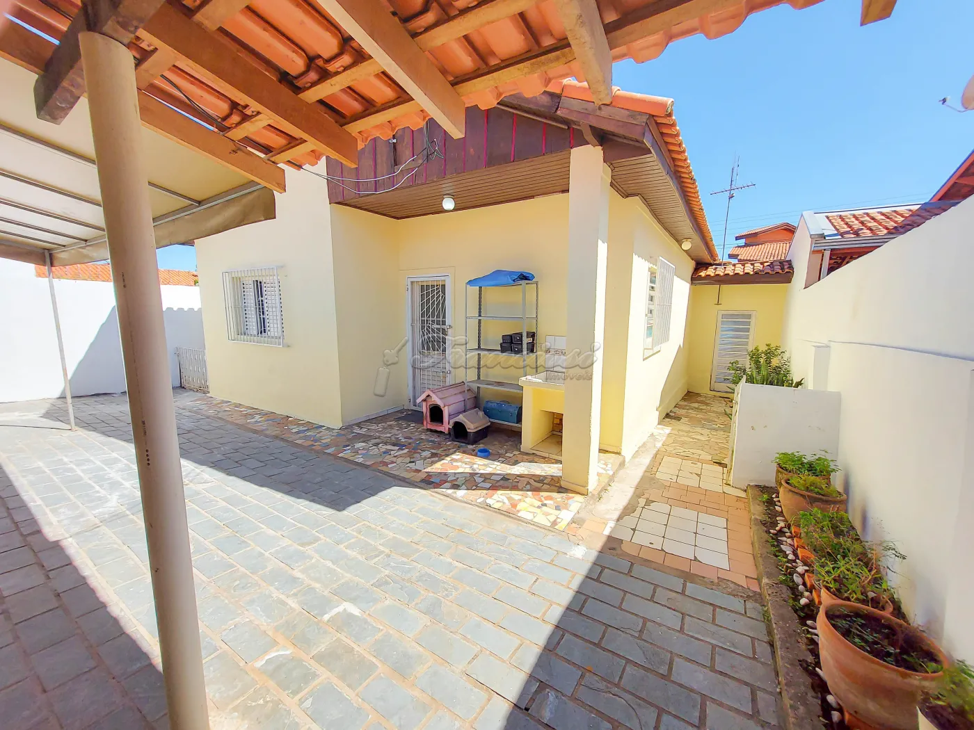 Casa com 3 dormitórios sendo 1 suíte, sala, cozinha, 1 banheiro social com box acrílico, área de serviço coberta, 1 banheiro externo e garagem coberta para 2 carros. Acabamento: laje, piso frio, cozinha e banheiro azulejados até o teto.