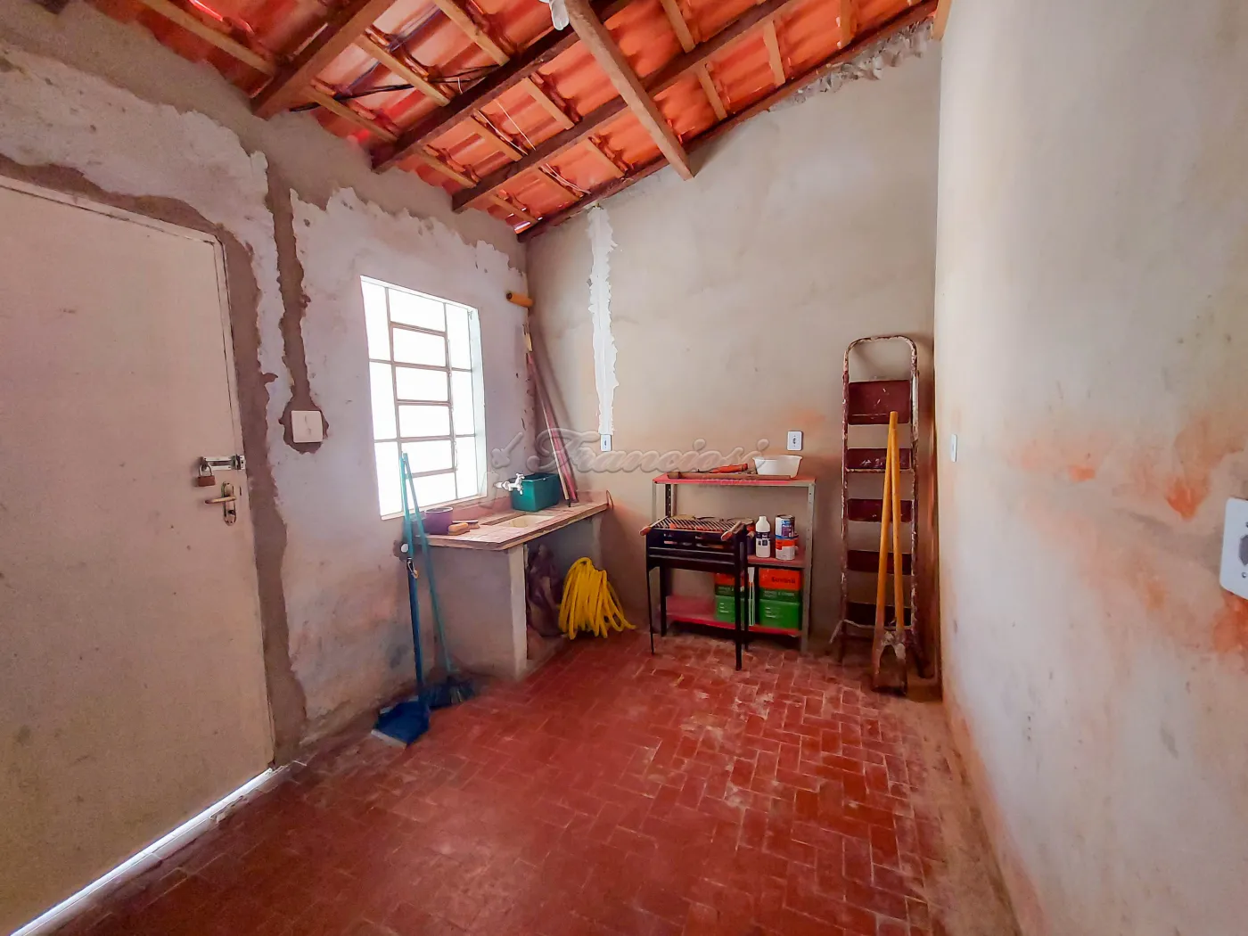 Casa com 1 dormitório, sala de estar, sala de jantar, cozinha, 1 banheiro social com box acrílico, área de serviço coberta e garagem coberta para 2 carros e entrada para mais carros. Acabamento: laje e piso frio.