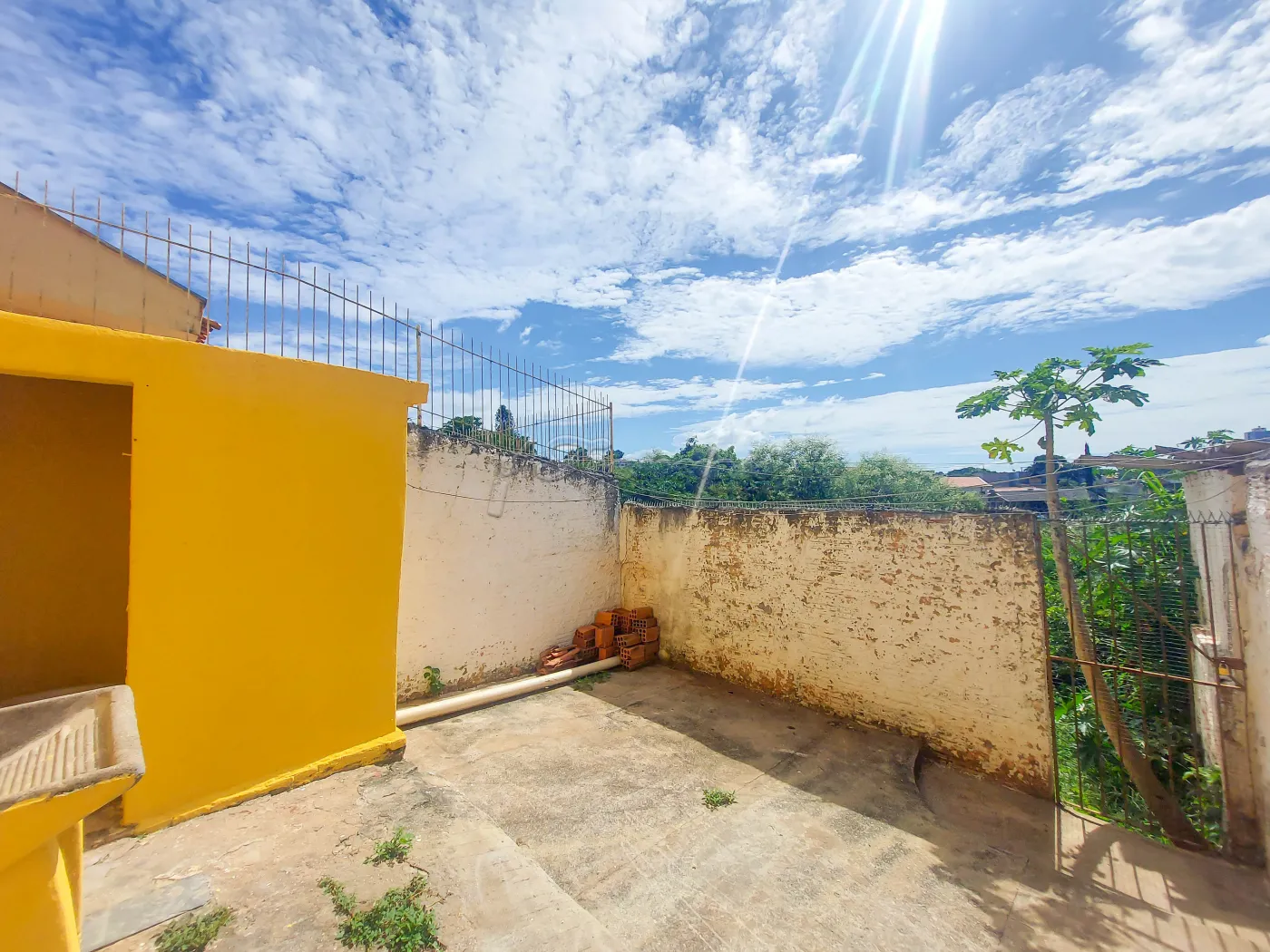 Casa com 1 dormitório, sala, cozinha fora, 1 banheiro, área de serviço e quintal.