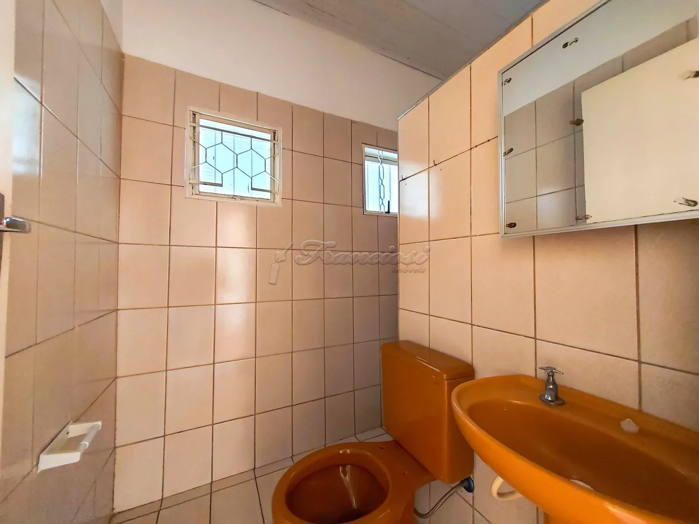 Casa com 2 dormitórios, sala, cozinha, 1 banheiro social, área de serviço coberta, quintal grande cimentado e garagem coberta para 1 carro. Acabamento: laje, taco, piso frio e azulejo.