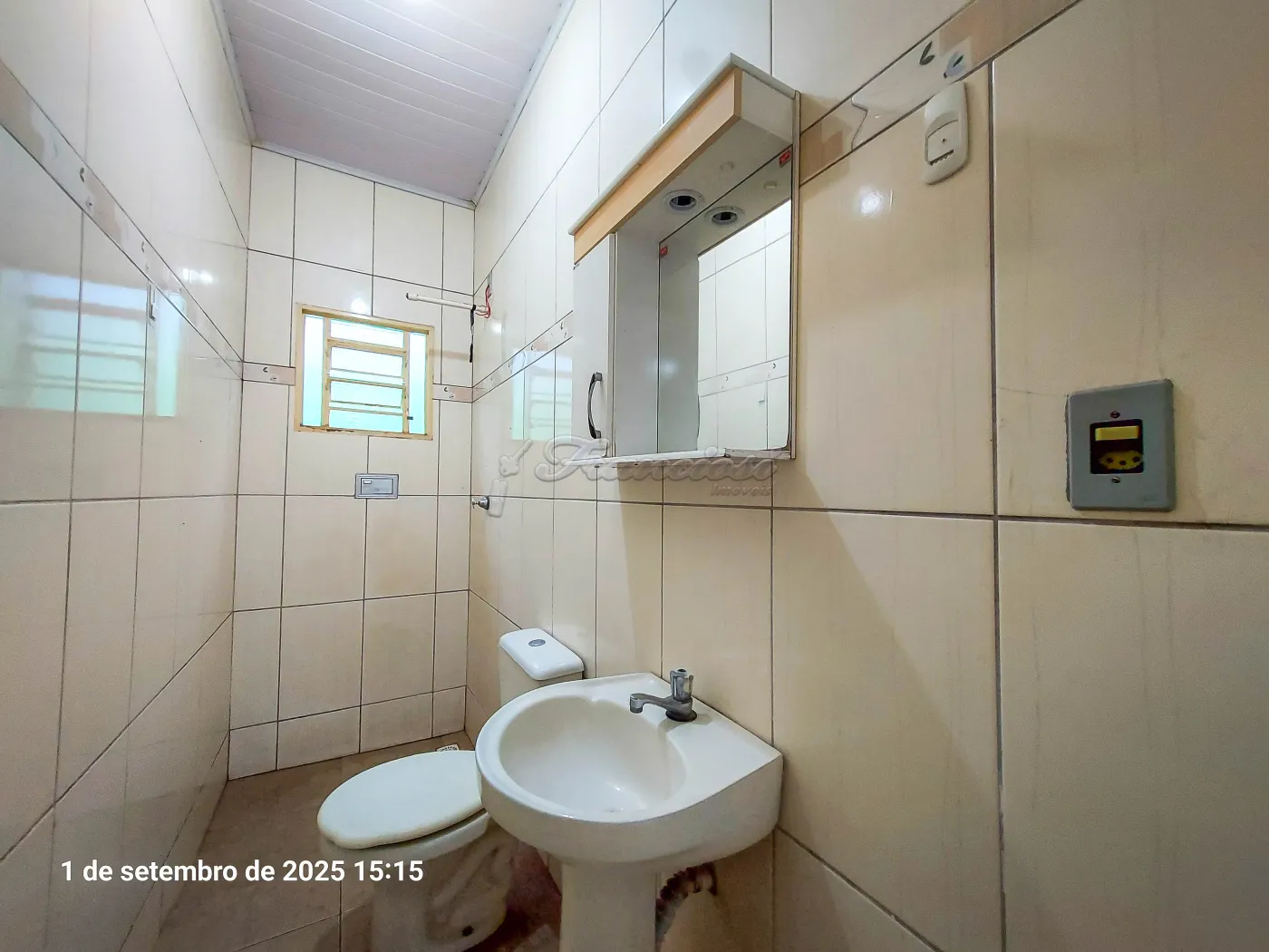 Casa com 2 dormitórios, sala, cozinha, 1 banheiro social, varanda, quintal médio, edícula com sala e 1 suíte, área de serviço coberta, área gourmet com churrasqueira e fogão à lenha, garagem coberta para 1 carro e entrada para mais 1. Acabamento: forro de madeira, piso frio e azulejo até a metade no banheiro.