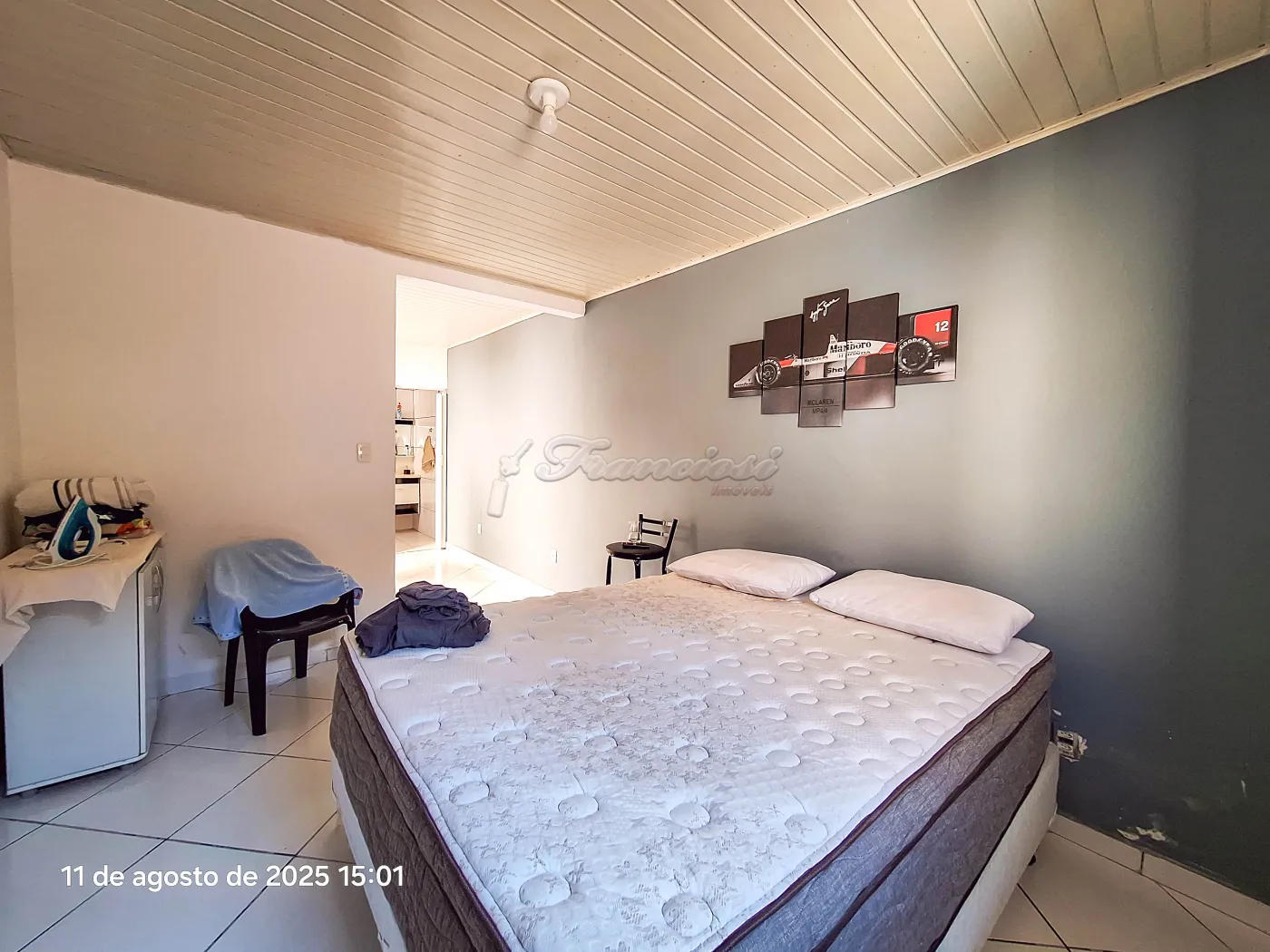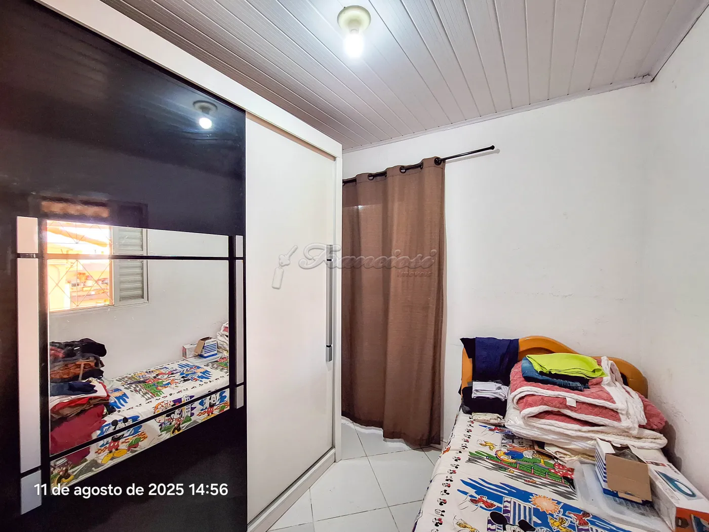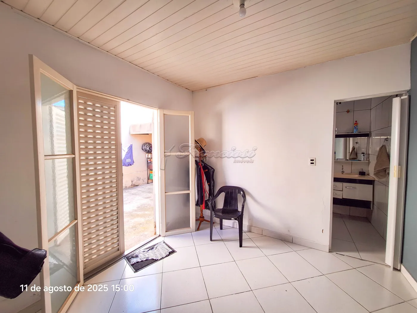 Casa com 2 dormitórios, sala de estar, cozinha com gabinete, 1 banheiro social com box acrílico, área de serviço coberta, quintal e garagem coberta para 2 carros. Acabamento: laje, taco, piso frio e azulejo.