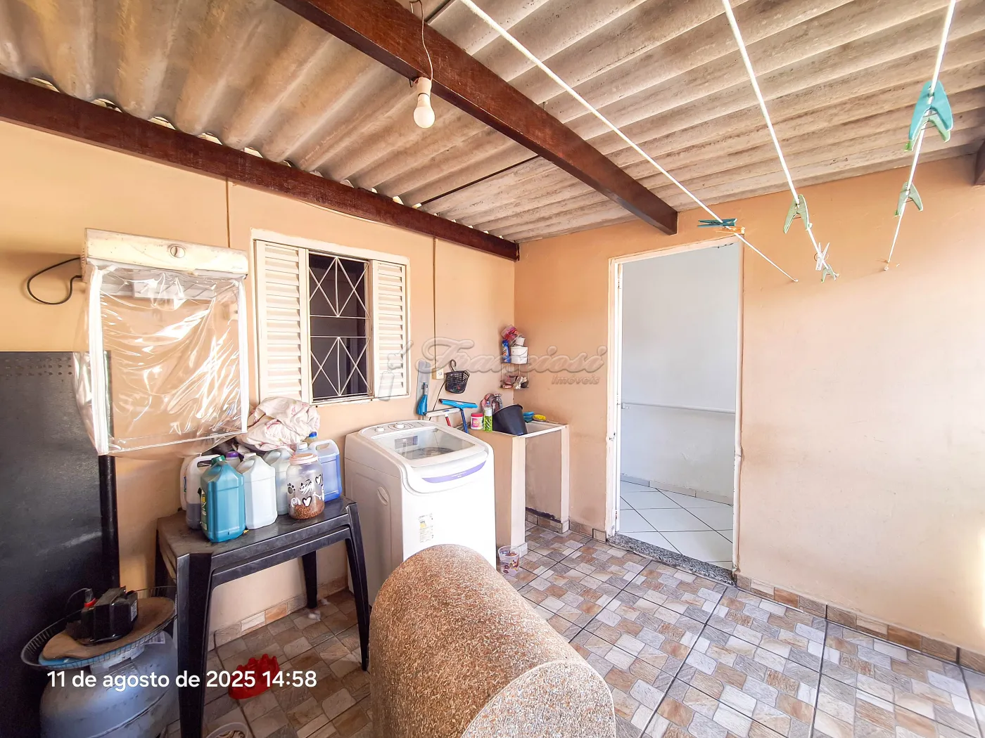 Casa com 2 dormitórios, sala de estar, cozinha, 1 banheiro social com box de acrílico, área de serviço coberta, quintal lateral e entrada para 1 carro. Acabamento: laje, piso frio, cozinha e banheiro azulejados até o teto.