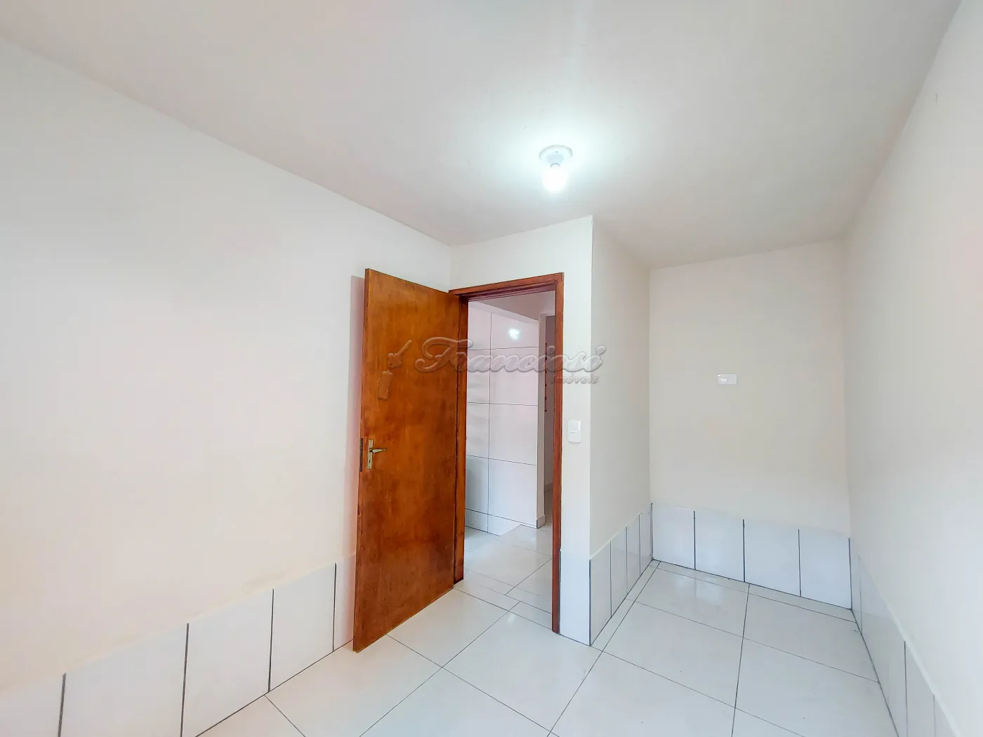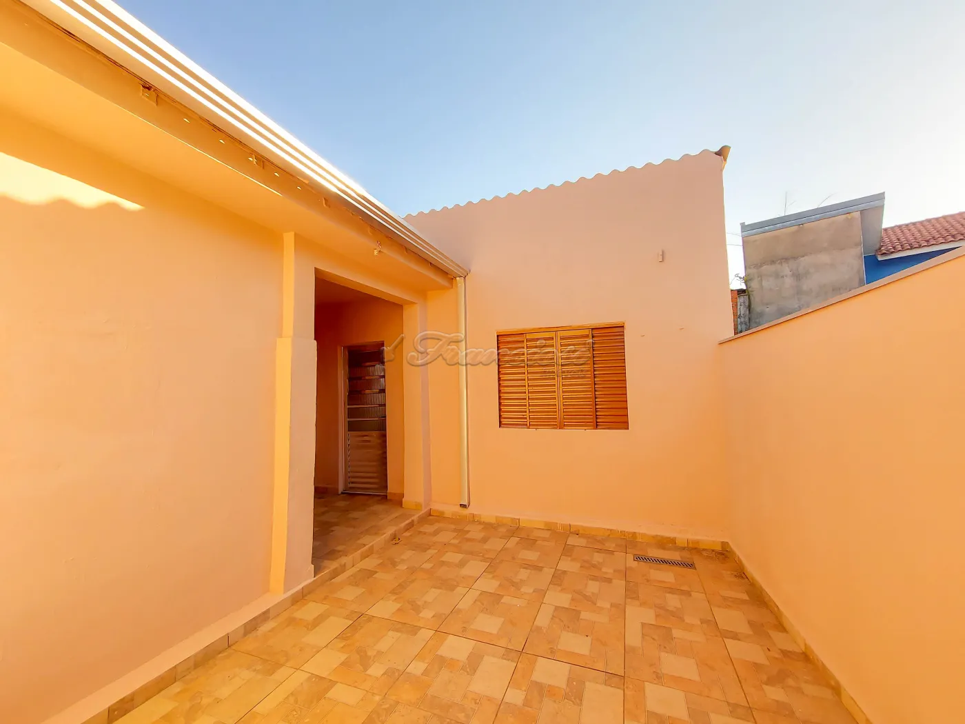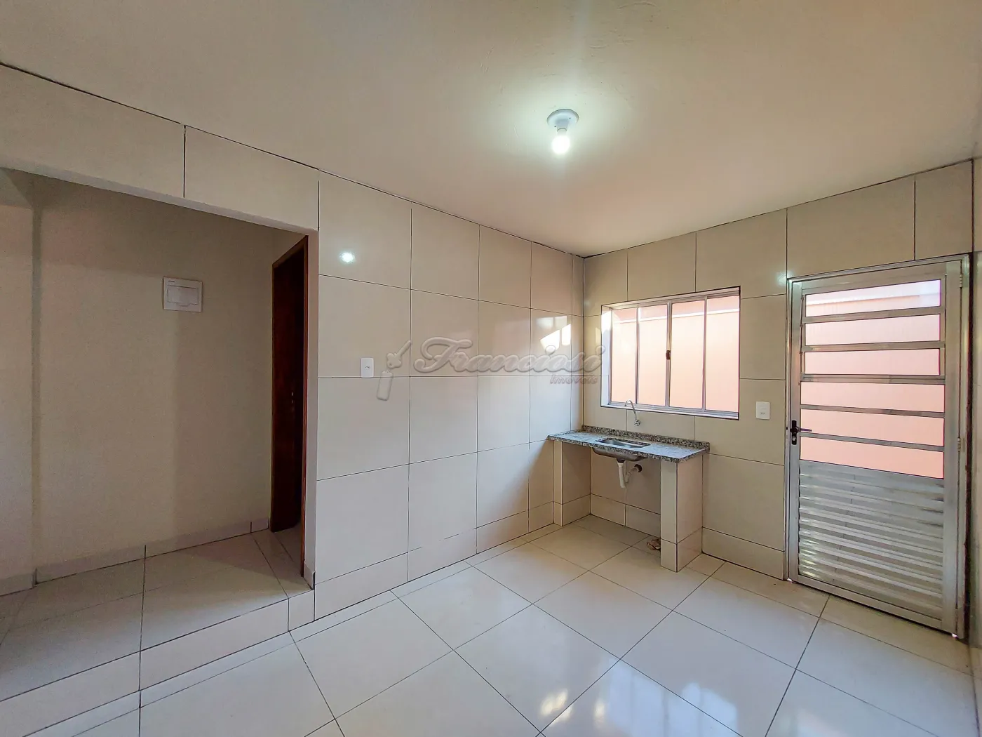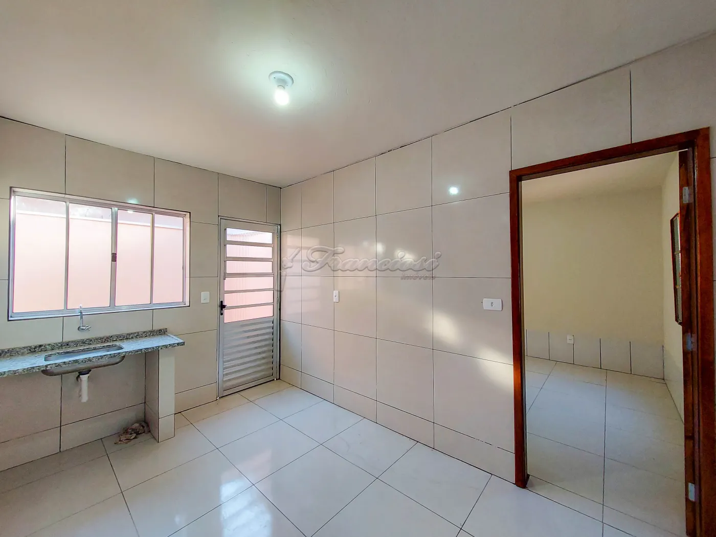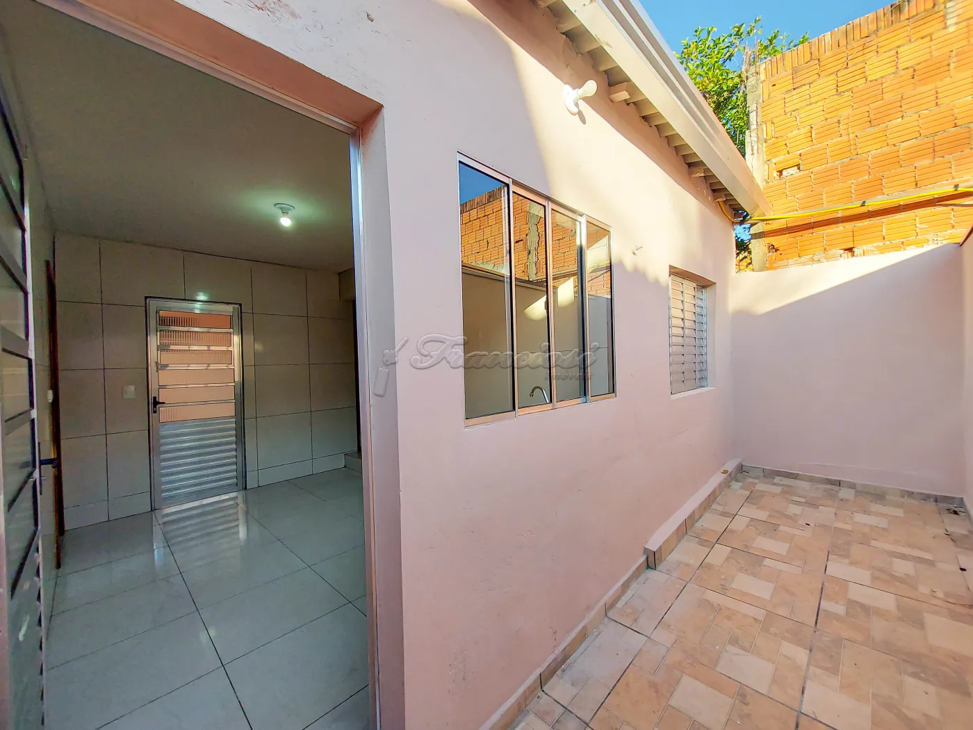 Casa com 2 dormitórios, sala, cozinha com armário, 1 banheiro social, área de serviço coberta, quintal, churrasqueira, 1 cômodo nos fundos e garagem coberta para 1 carro. Acabamento: forro de madeira e piso frio.