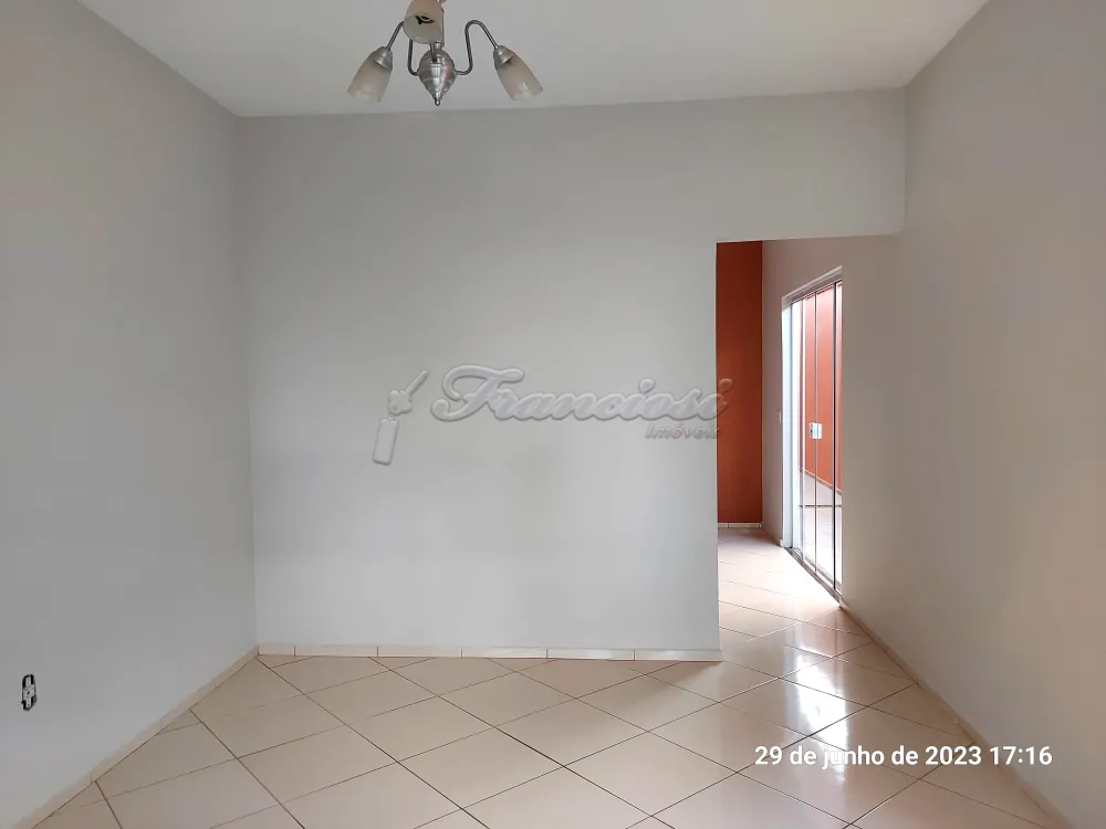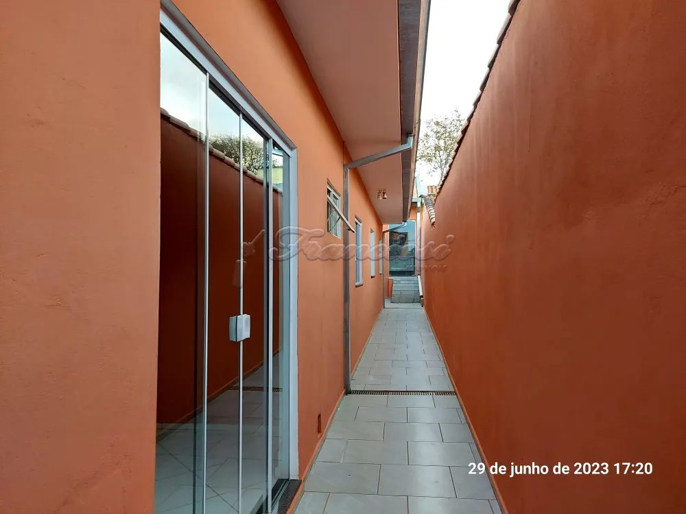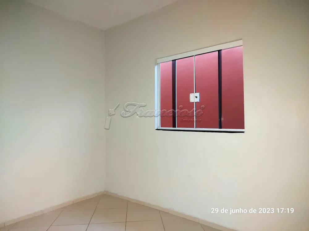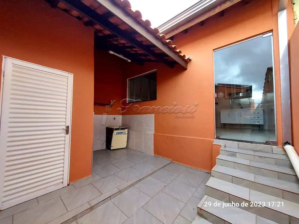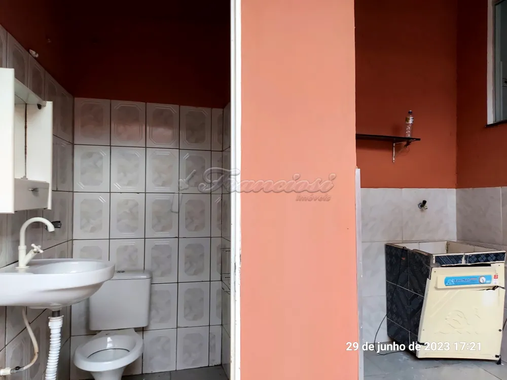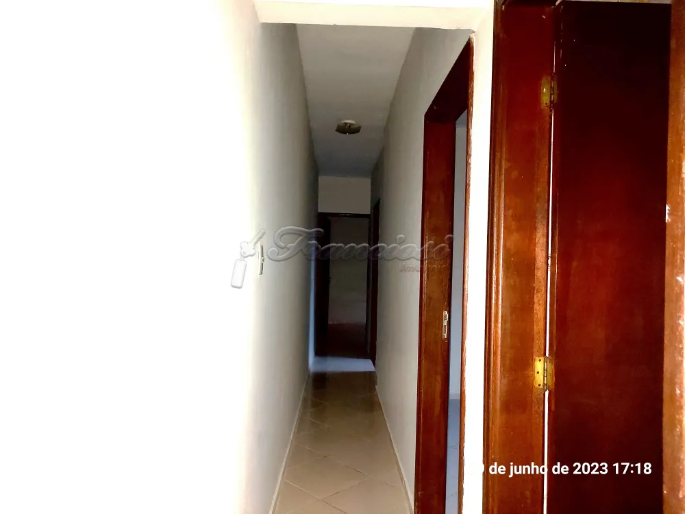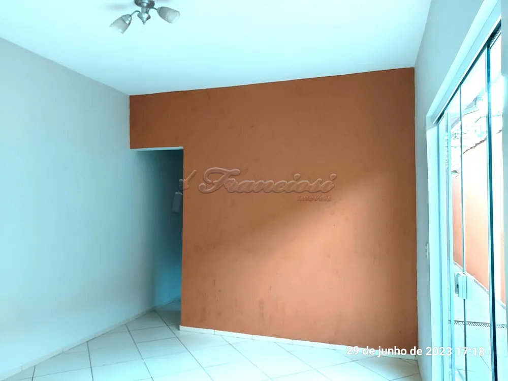 Casa com 3 dormitórios, sala, cozinha, 2 banheiros, área de serviço, quintal cimentado, 1 cômodo externo com fogão a lenha e área de serviço. Acabamento: forro pvc, assoalho de madeira, piso frio e azulejo. Sem garagem.