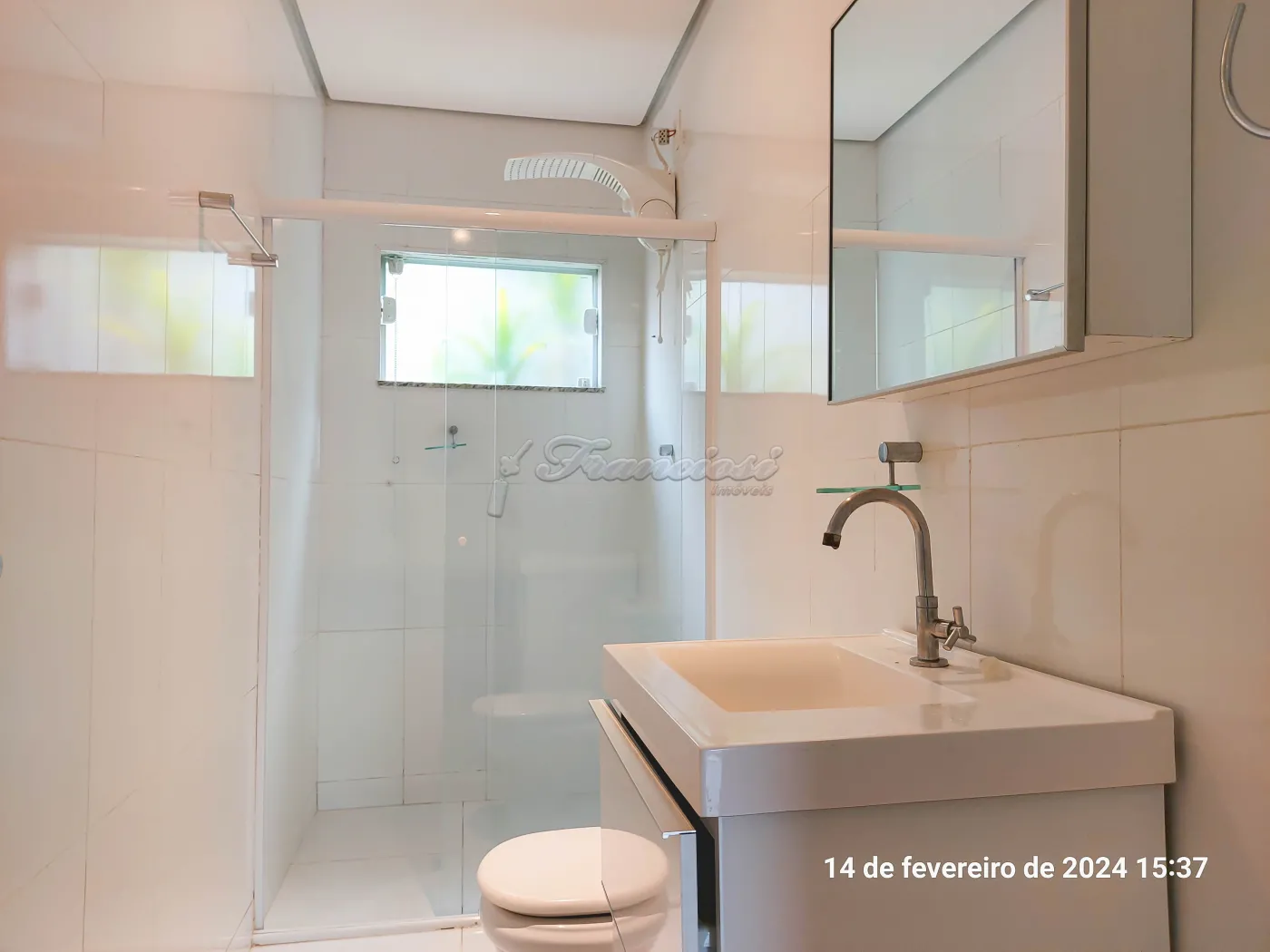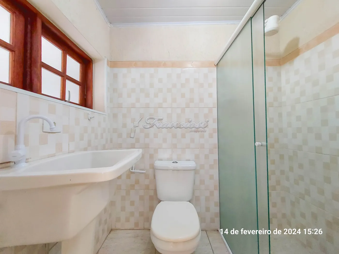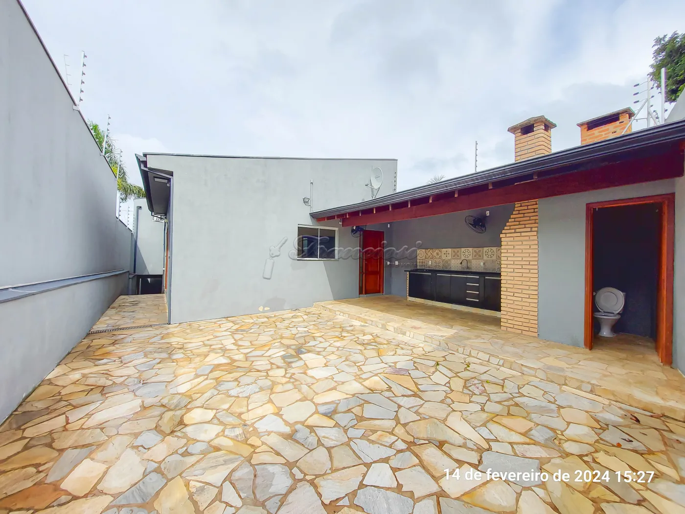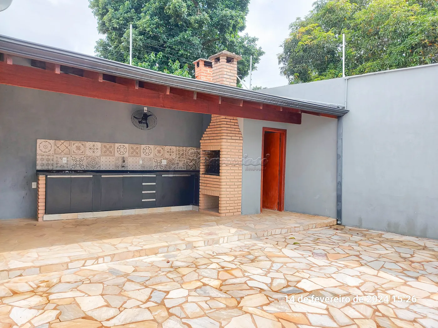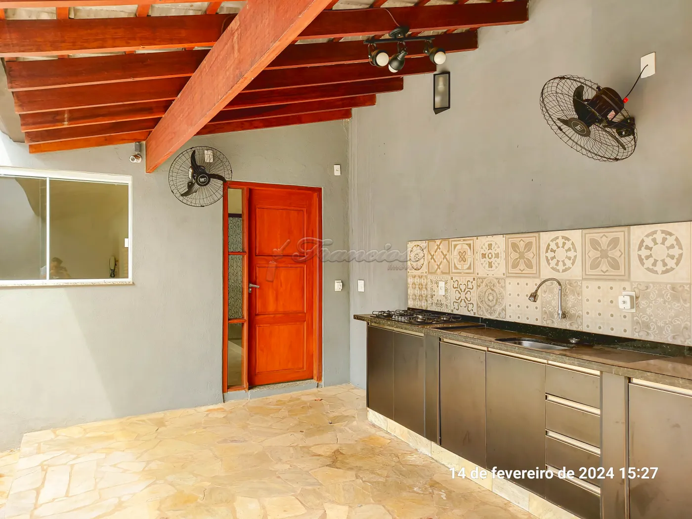 Casa com 3 dormitórios sendo 1 suíte com box acrílico, 1 banheiro social com box acrílico, sala de estar ampla, cozinha, lavabo, área de serviço, quintal grande cimentado, churrasqueira, 1 banheiro externo e garagem coberta para 2 carros. Acabamento: laje, piso frio, cozinha e banheiro com azulejo pela metade.