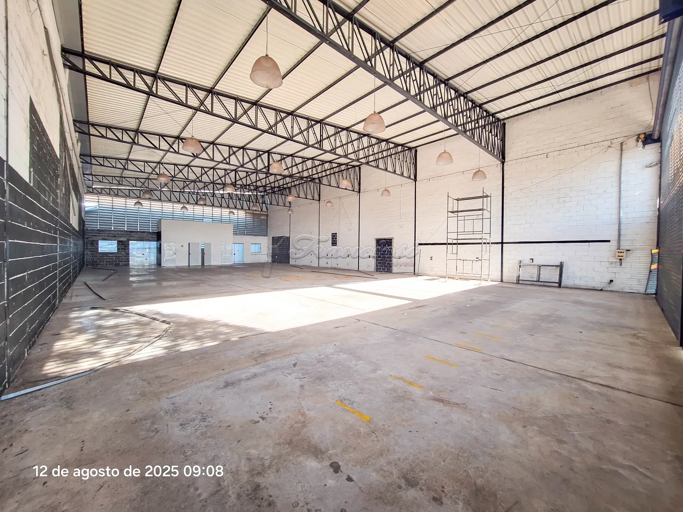 Barracão medindo aproximadamente 500 m² com banheiro.