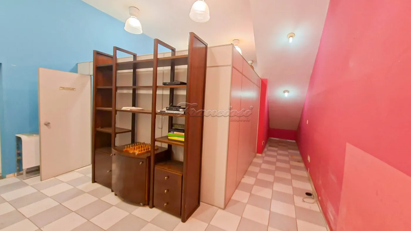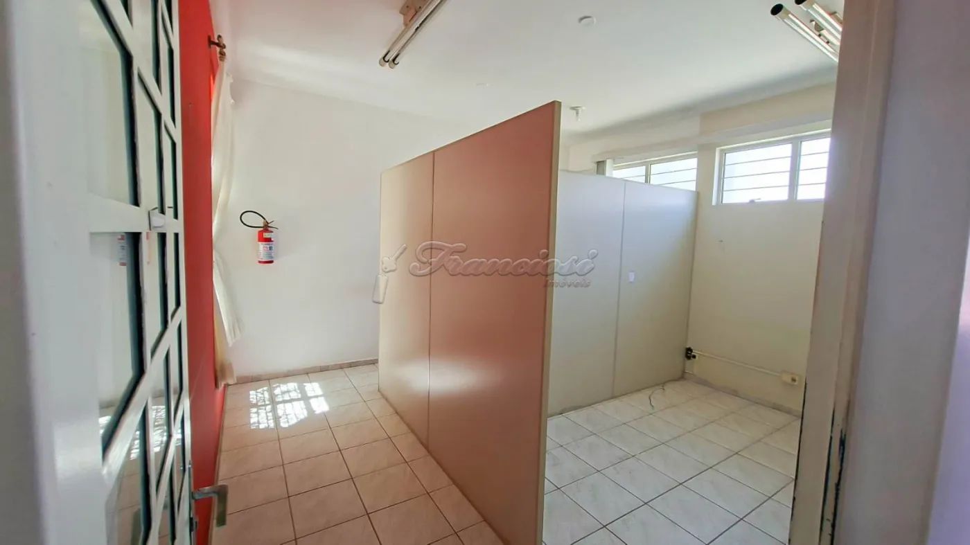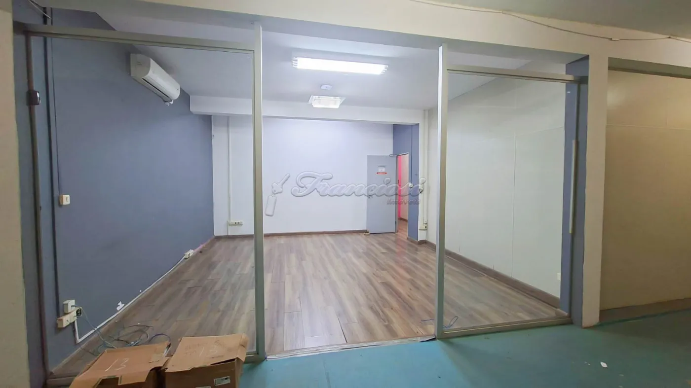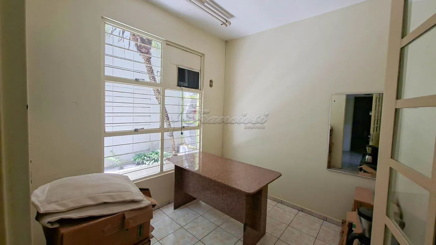 Salão comercial com recepção, 10 salas sendo 9 com ar condicionado, 6 banheiros, 2 salões médios, copa, lavanderia, 1 salão medindo 120 m², recuo para 4 carros e estacionamento coberto. Com porta de ferro automática.