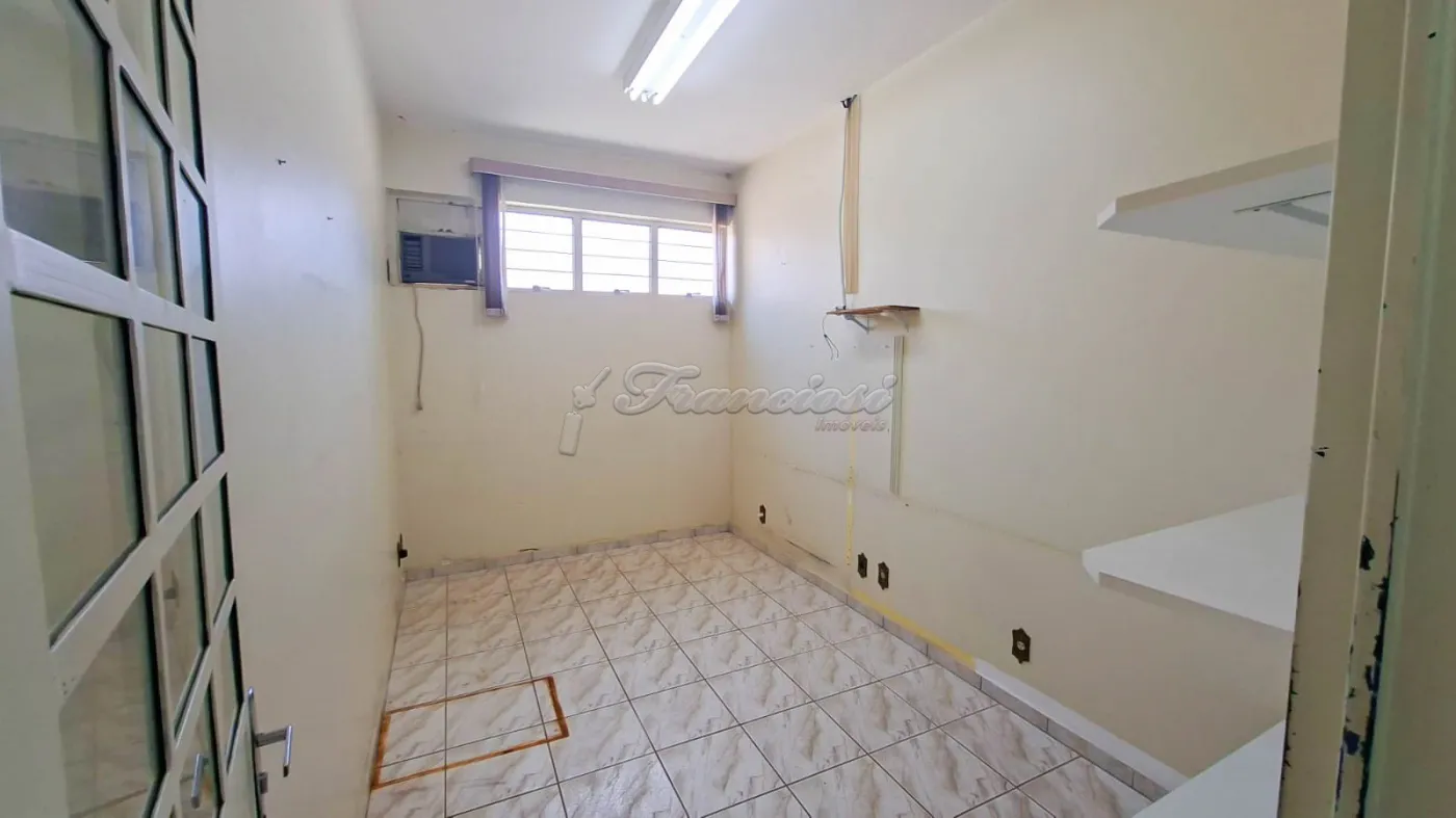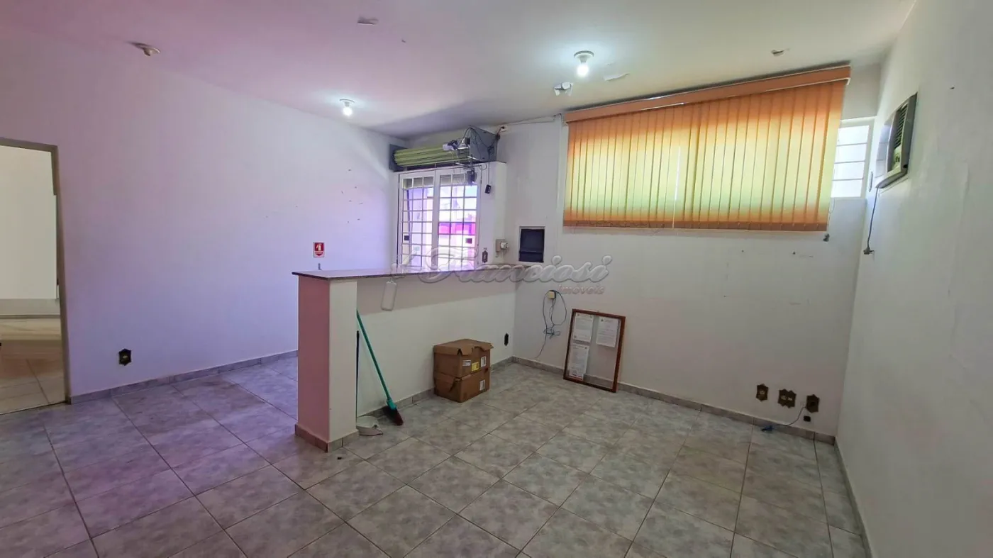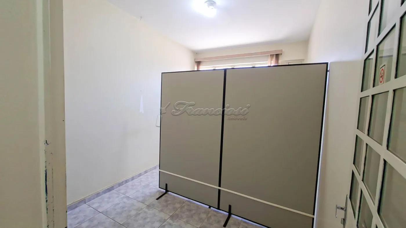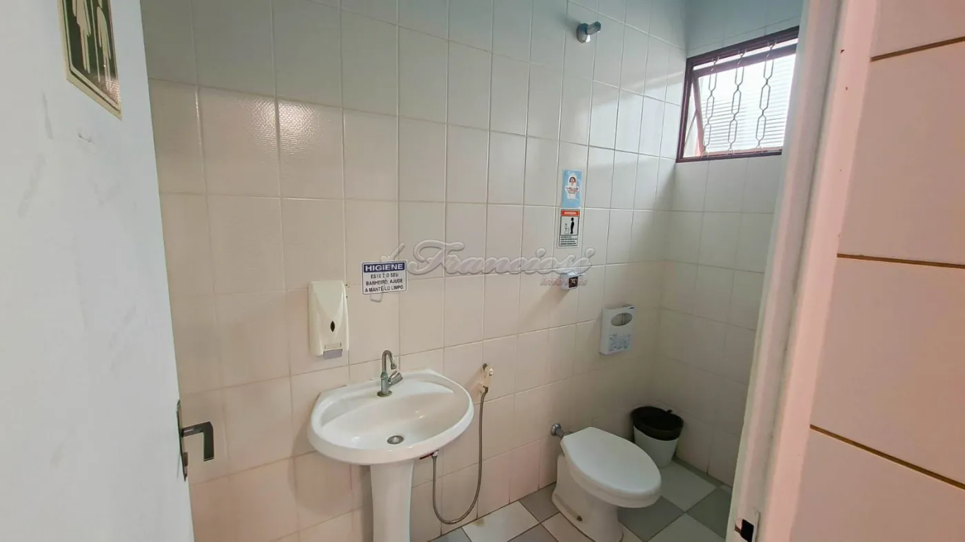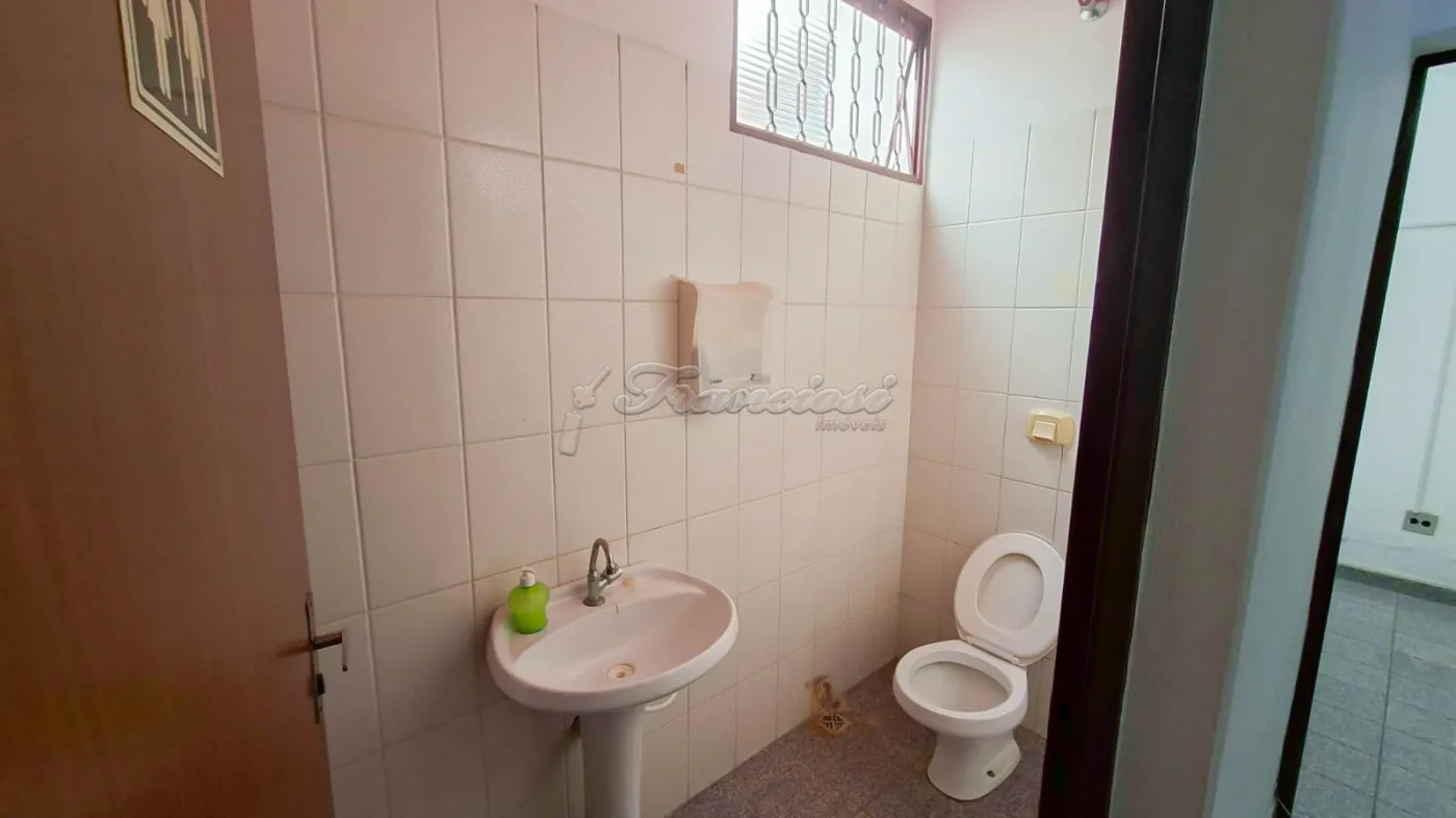 Salão comercial com recepção, 10 salas sendo 9 com ar condicionado, 6 banheiros, 2 salões médios, copa, lavanderia, 1 salão medindo 120 m², recuo para 4 carros e estacionamento coberto. Com porta de ferro automática.