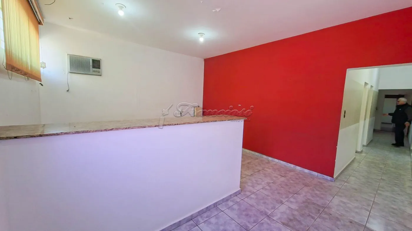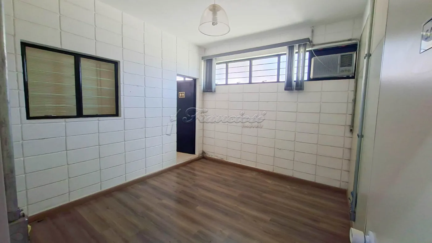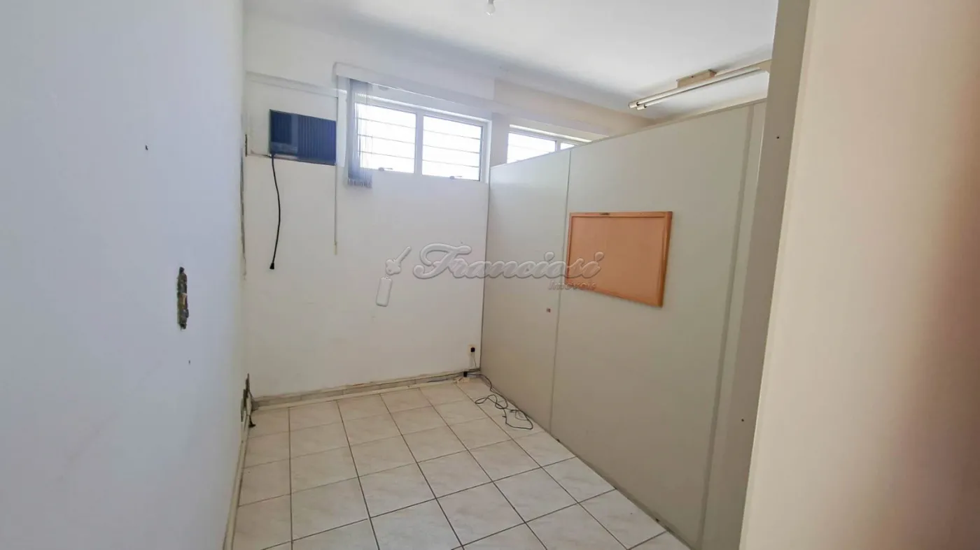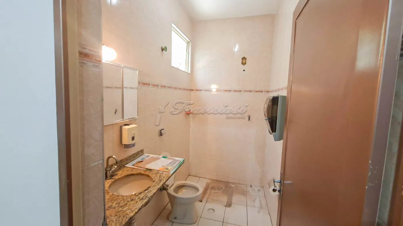 Salão comercial com recepção, 10 salas sendo 9 com ar condicionado, 6 banheiros, 2 salões médios, copa, lavanderia, 1 salão medindo 120 m², recuo para 4 carros e estacionamento coberto. Com porta de ferro automática.