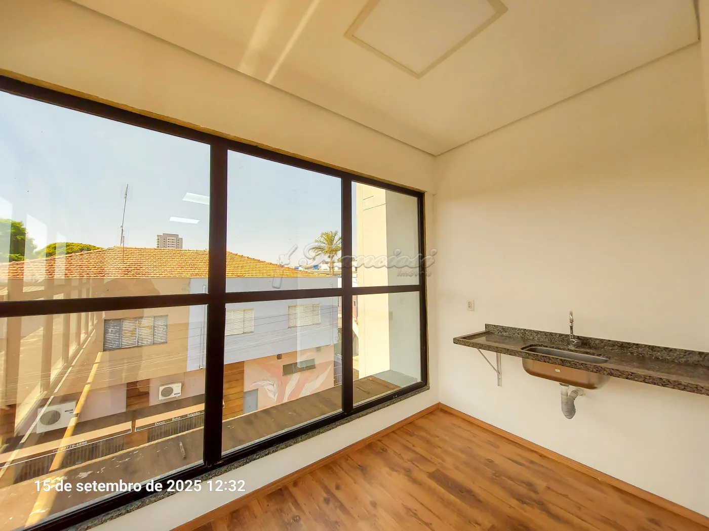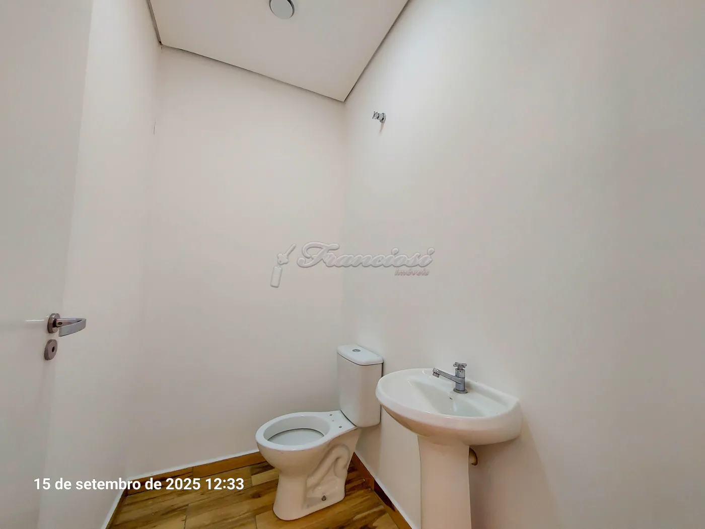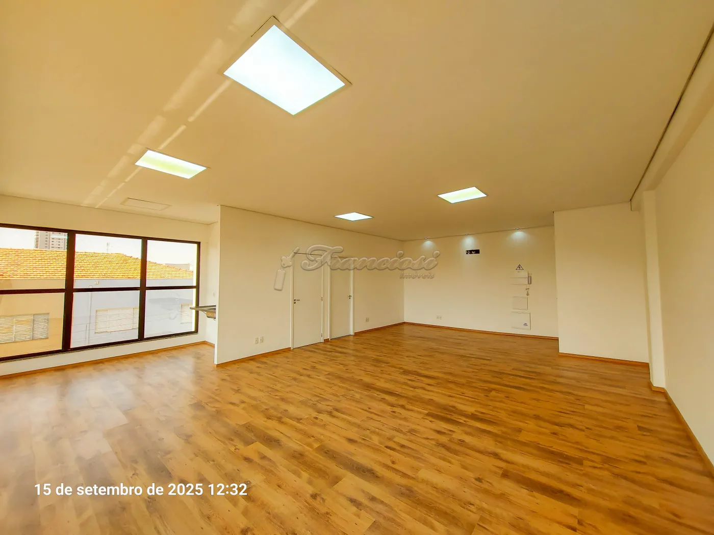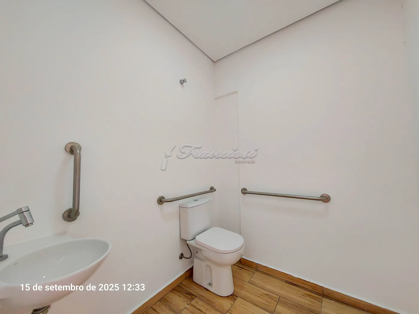 Sala comercial medindo 64,20 m² com 2 banheiros, no andar superior.