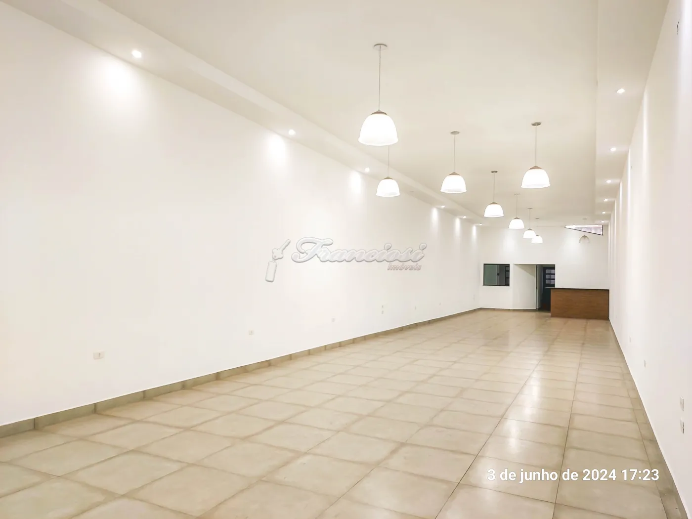 Salão comercial medindo aproximadamente 164 m² com copa, escritório e 03 banheiros sendo 01 para deficiente, área de serviço.