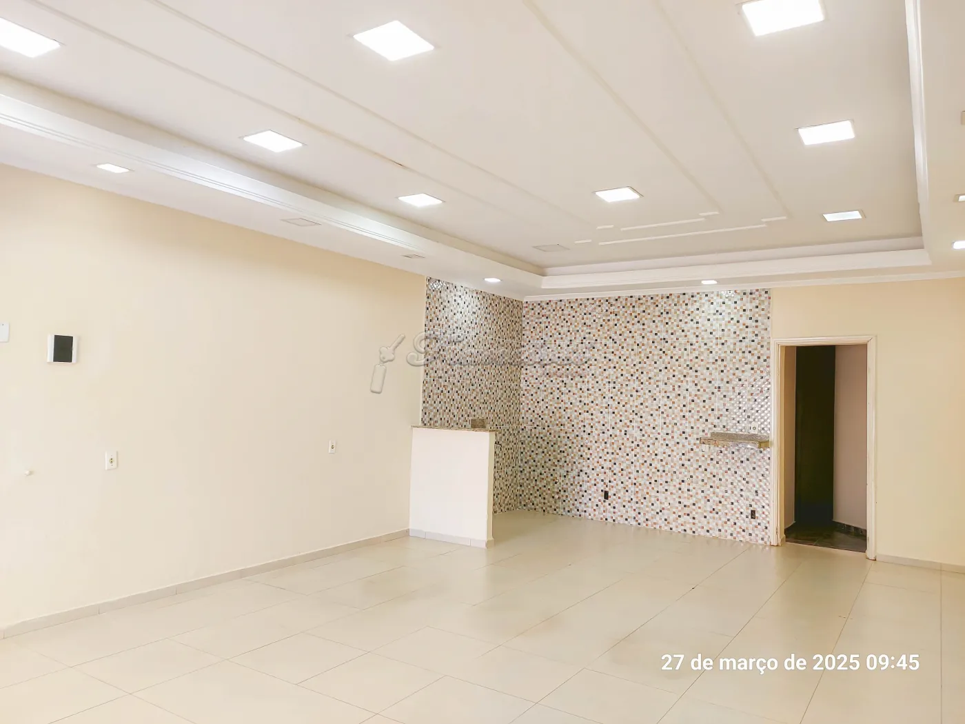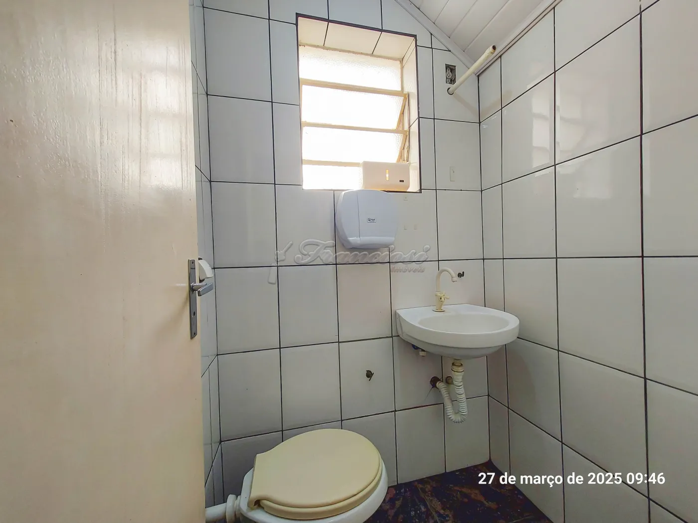 Salão comercial medindo 43 m², 1 banheiro e copa.