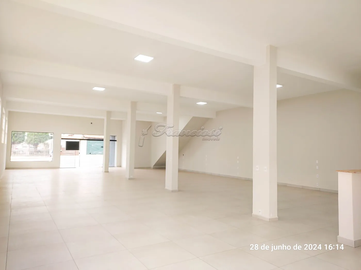 Salão comercial com salão no piso inferior, escritório, despensa, área coberta na parte externa, área de serviço, vestiário masculino e feminino, copa, mezanino, 2 salões amplos e 1 sala ampla no piso superior, recuo para 4 carros. Acabamento: laje, forro PVC, estrutura metálica com telha de zinco, piso frio, cimento queimado e paviflex.