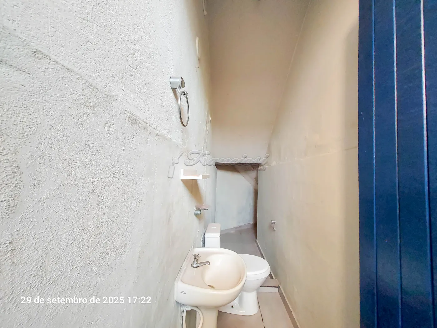 Salão comercial medindo aproximadamente 66 m², parte superior com 1 sala medindo 24 m², 1 cozinha, 1 banheiro social e 1 banheiro superior. Acabamento: laje, piso frio, cozinha azulejada meia parede e banheiros azulejados até o teto.